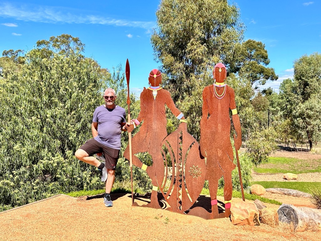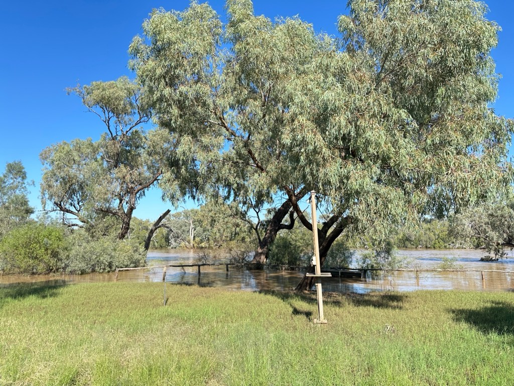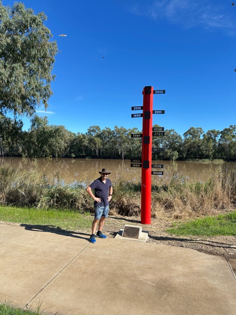 We walked to the Cunnamulla Artesian Spa next to the Warrego River which we were keen to trial, but with the flooding, the pumps weren’t working, so they were only doing Fire and Ice experiences. (Karen works there on weekends). The river walk next to the spa still had water over it.