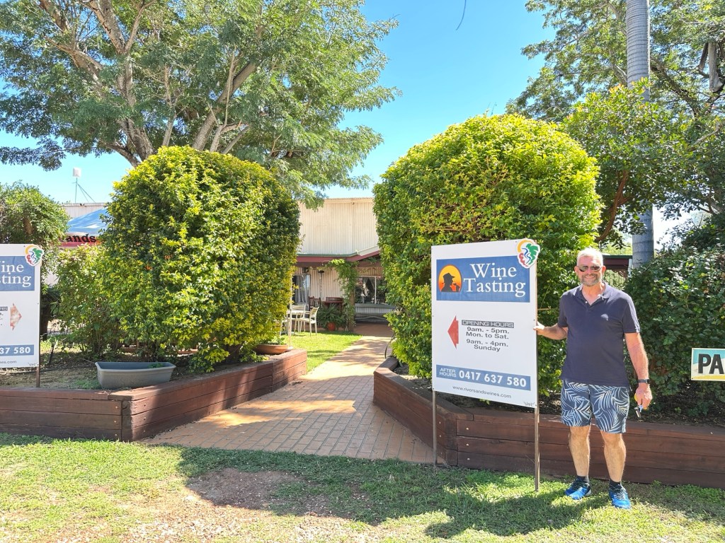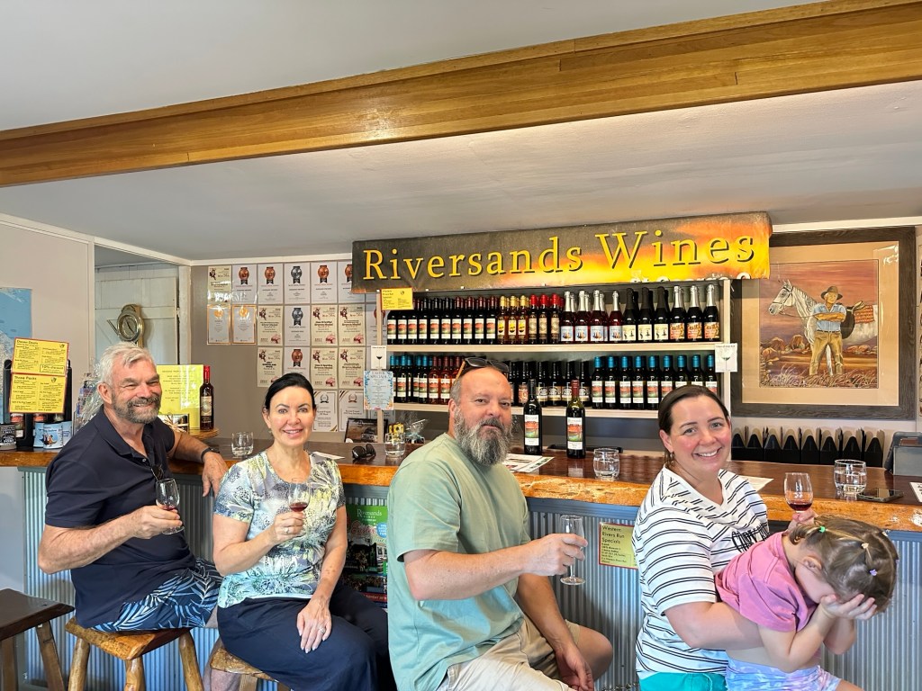 Onto Riversands Winery, Queensland’s most western winery. A very sweet Swedish girl gave us a lovely commentary during our free wine tasting. We enjoyed the Vermintino, Sparkling Shiraz, Merlot, Shiraz( even though it was a lot lighter than we are used to), and of course the “Fu*#*n Good Port”.
