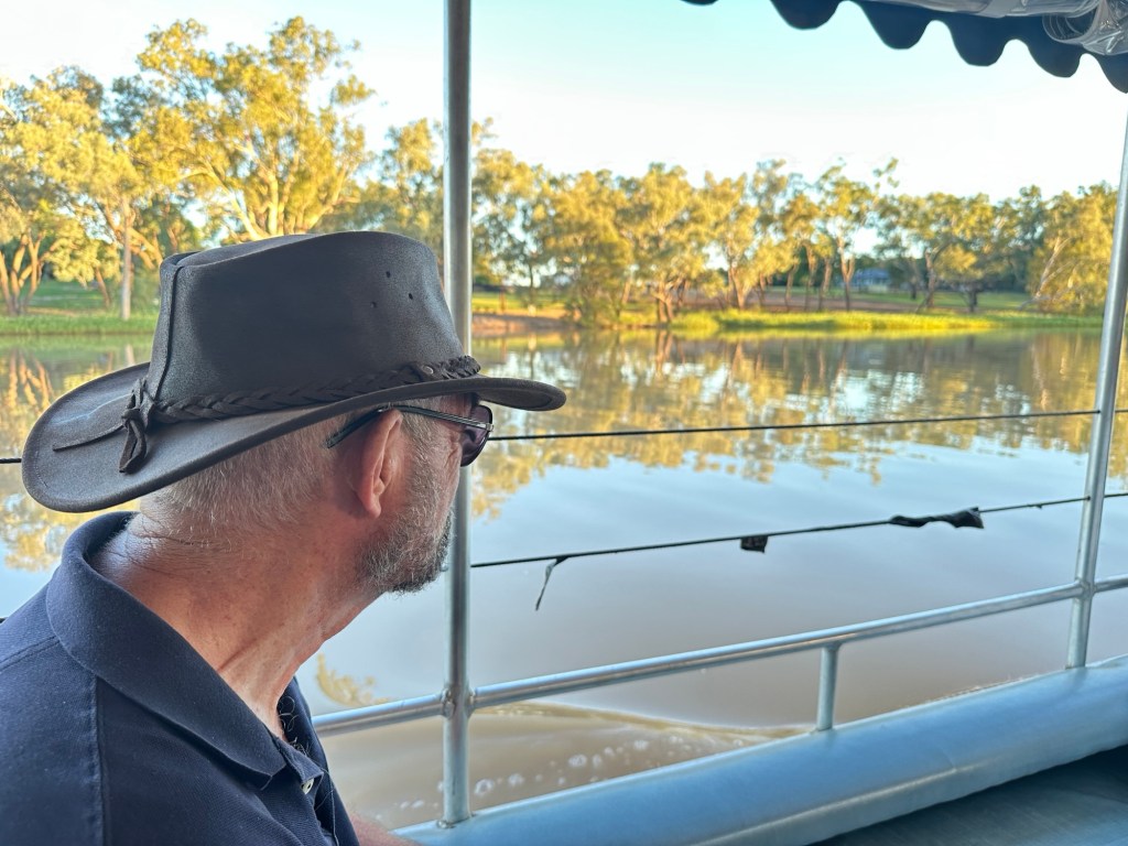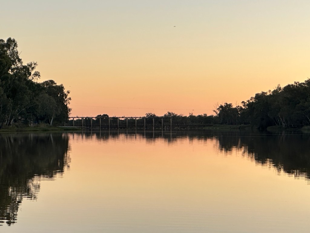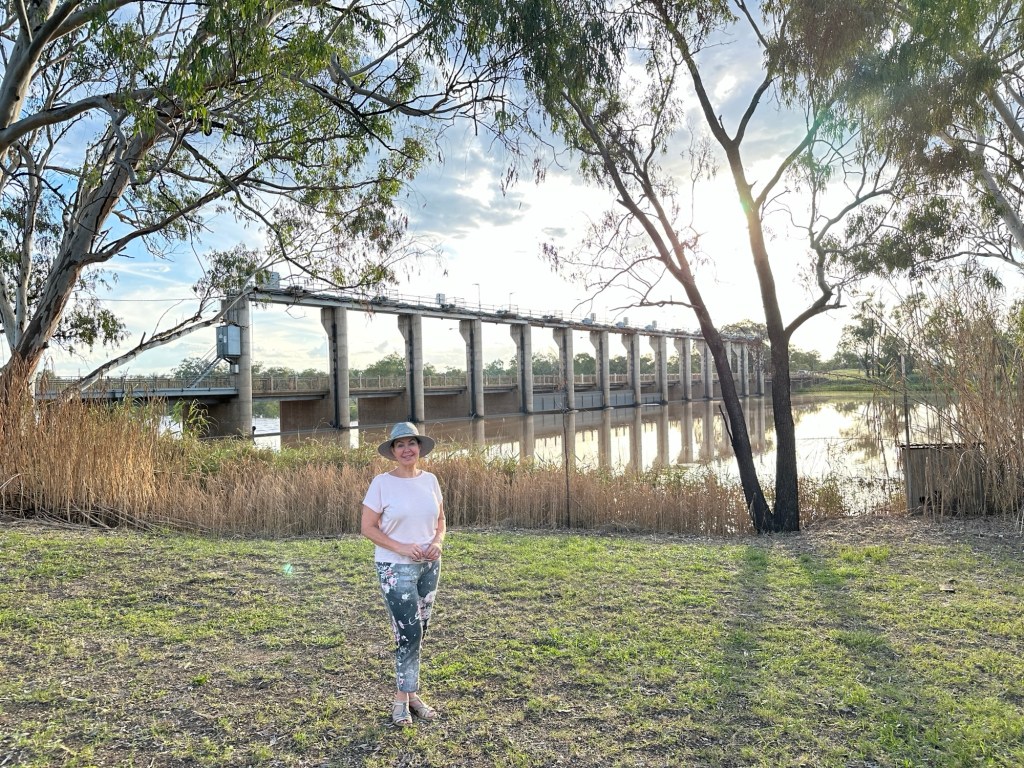 We finished the day with a walk to the Jack Taylor Weir which is where explorer Major Thomas Mitchell crossed the Balonne River back in 1864 and gave St George its name. Three of the sluice gates were open letting a surge of water out to the lower river. We had to step up our walking pace as the mossies seemed to descend in plague numbers at sunset.
