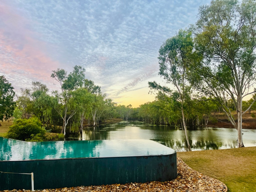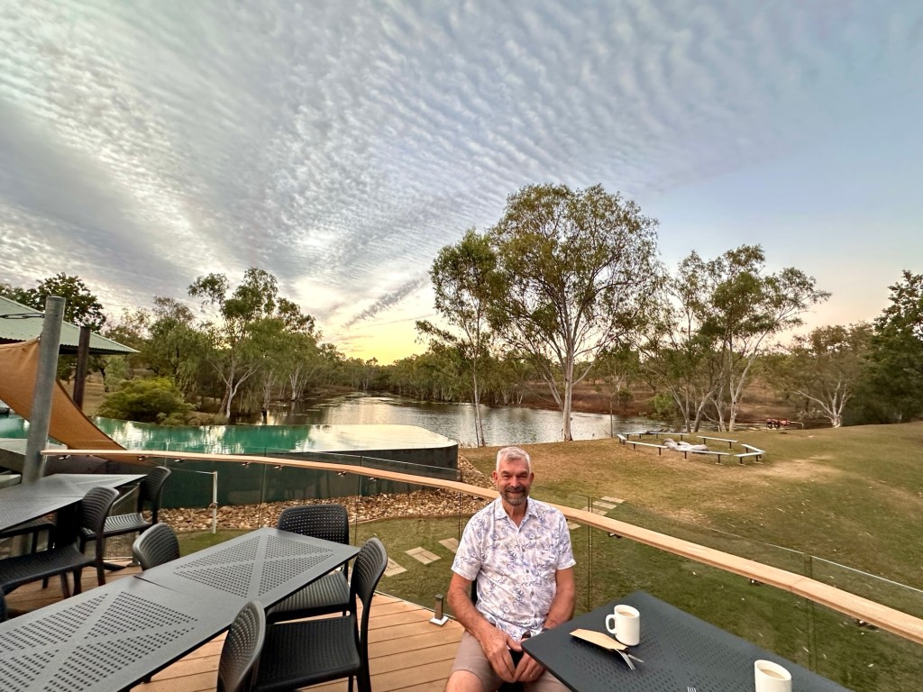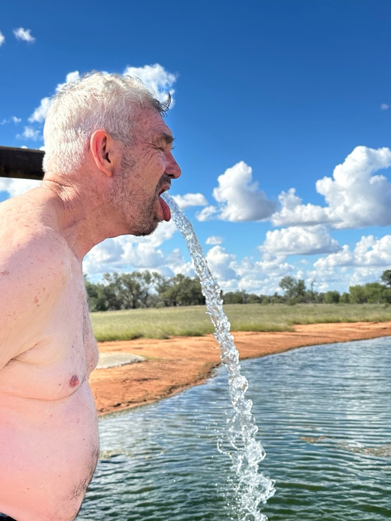 Charlotte Plains is a family owned 67,000 acre working sheep and cattle station, but also offering an exceptional hot artesian bathing experience with a water source that is naturally heated to 42 degrees. You start at the hot pools and move on to the cooler pools. We were sold on the benefits of the mineral rich artesian waters- skin rejuvenation and rehydration, muscle relaxation and arthritic pain relief, not to mention the improved sleep. I have to say it was all very relaxing and enjoyable. A cold drink at the rustic bar completed the experience. We drove back to Cunnamulla for a home cooked meal, followed by a serious Canasta game!