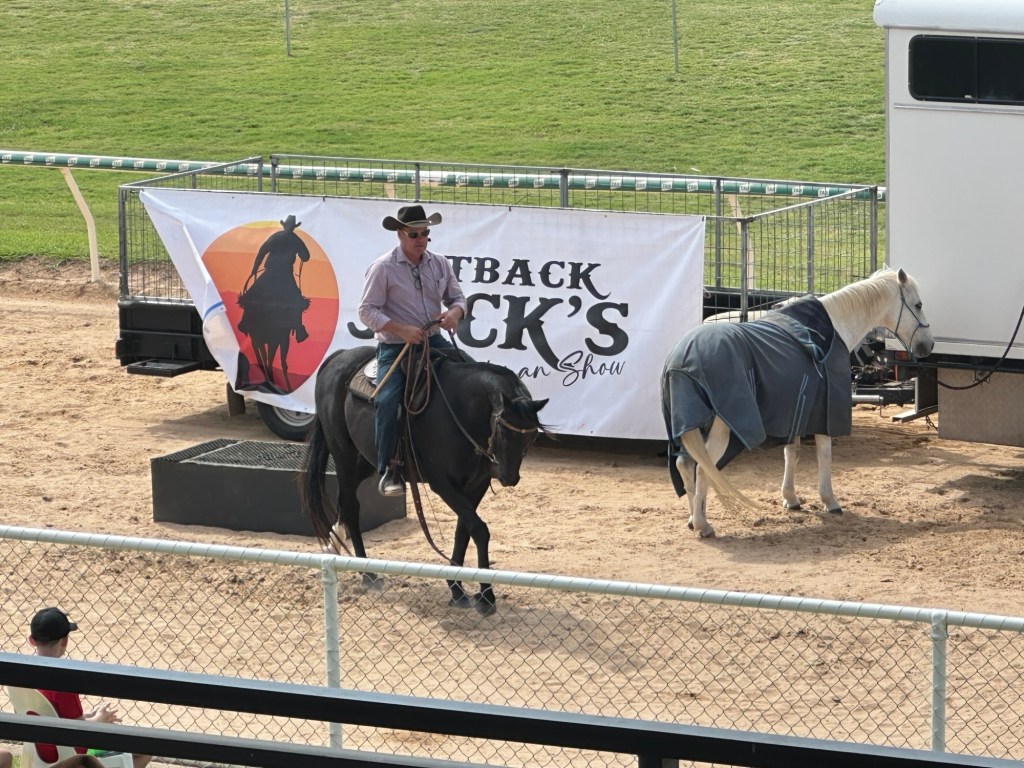 Agfair Broken Hill happened to be on this weekend – it is a two-day biennial event that showcases the latest technology, products, services, food, and wares from a variety of vendors. We had a couple of hours walking around enjoying the rural displays. Watched the “Butcher Girl” cut up a beef hindquarter – we were fascinated at the ease in which she did it.