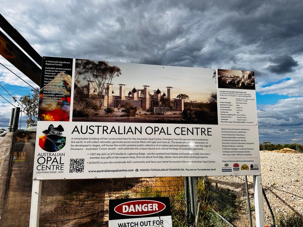 Next, The Big Picture – definitely worth seeing. Broken Hill artist, Ando, had a vision and ambition to create the world’s largest acrylic painting on canvas by a single artist. And he did! The 100 metre long and 12 metre high painting is a beautiful depiction of the outback landscape- incredible detail, especially when you consider the number of brushstrokes that were required to create the painting. The foreground was just as amazing, with red dirt, saltbushes and native “animals”. A silver jewellery display there was equally as interesting. Well to me anyway!