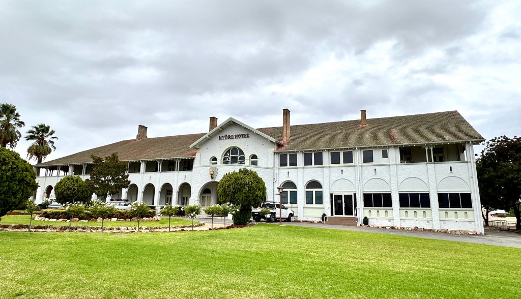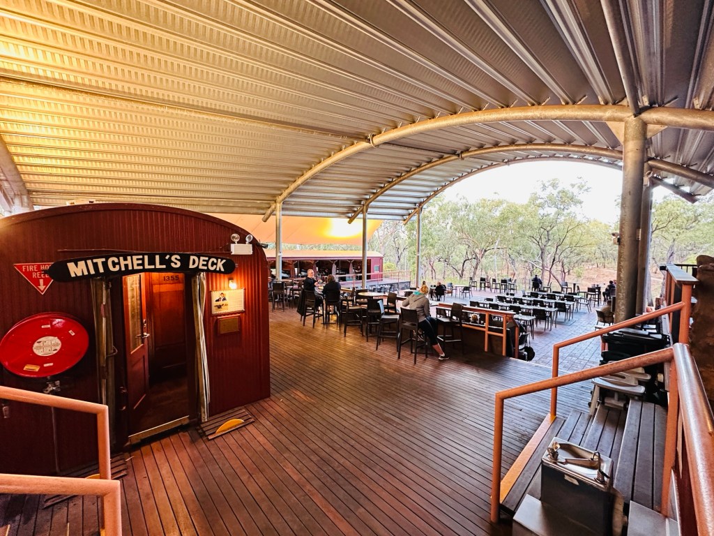 Tonight we had dinner at the Palace Hotel – of “Priscilla Queen of the Desert” fame! The movie was filmed there in 1994. A unique place with painted murals from ceiling to floor. Nice meal, followed at 8.30 by a performance from local rock n roll band “Fire Bucket”. Great night.