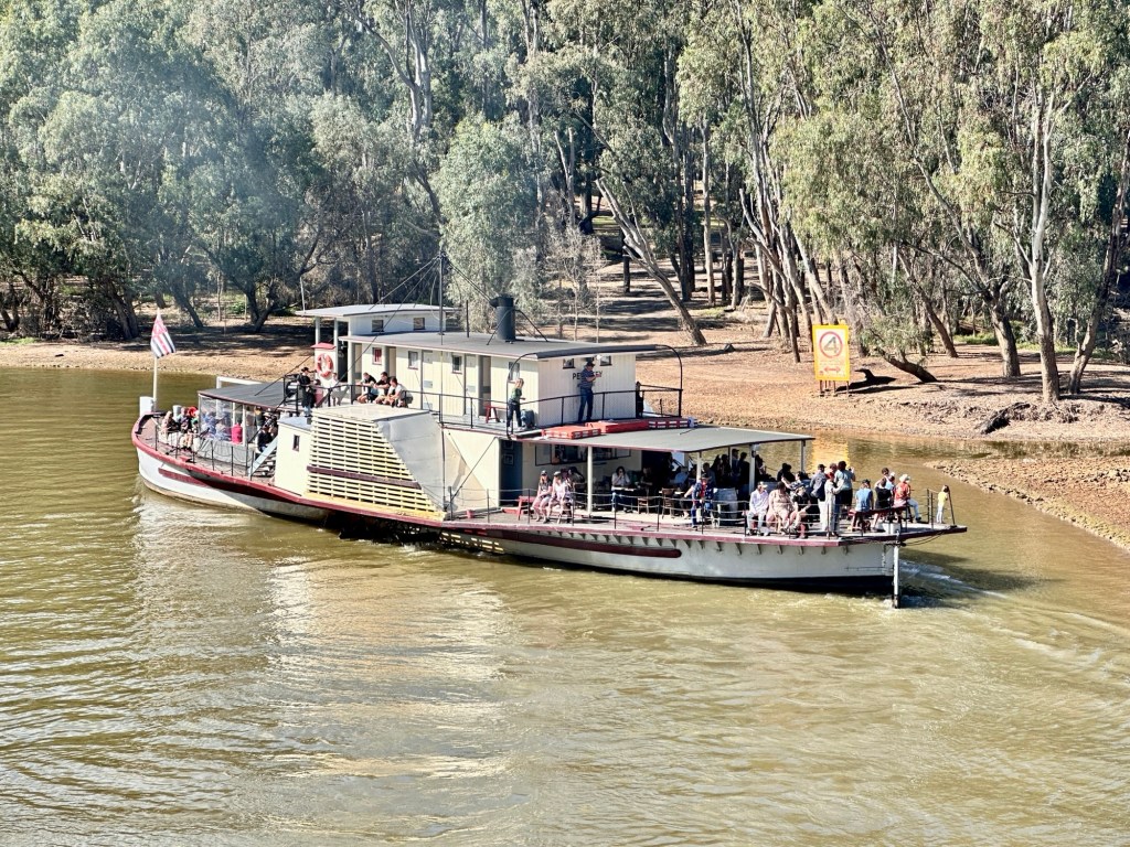 The Menindee Lakes are actually a system of 9 lakes, fed by the Darling River. We stopped at the lookout point to see the main one. It was huge -it can be dry, or it can be full. From what we heard, it was 50% full. The lake appears to be a Mecca for birdwatchers – so many pelicans, storks, cormorants and seagulls. Unbelievable!