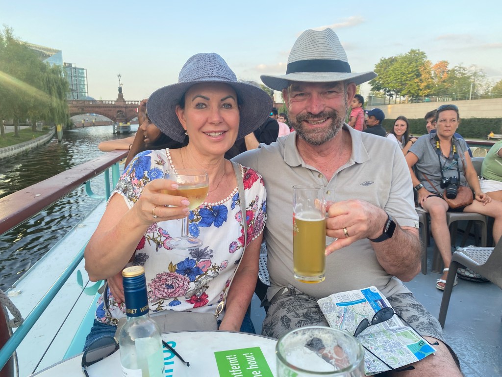 Lucky our hotel was close by, so we went back to cool off for an hour, and refresh our minds after all the horrors we had read about. Out to the train station, and a mad dash to find the boat we were booked on for a late afternoon cruise of the River Spree.