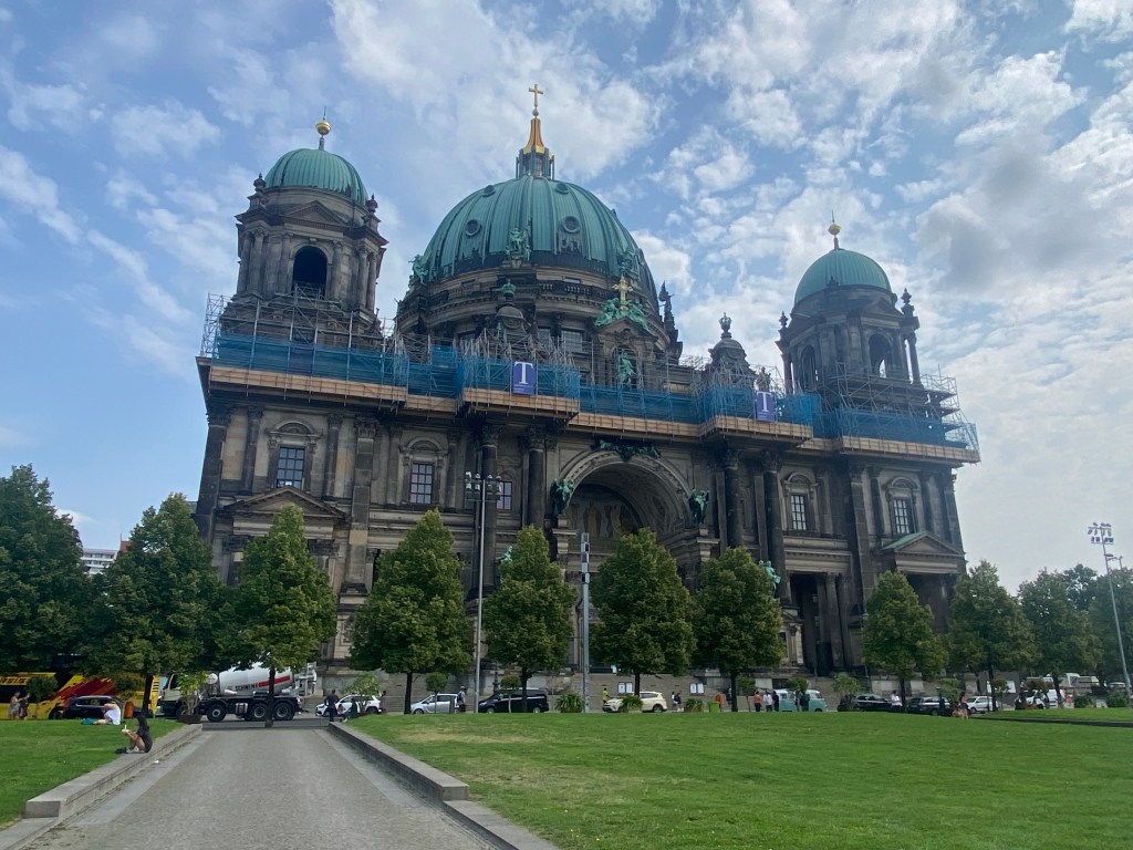 We started at Museumsinsel – an island which is home to 8 Museums and the Berliner Cathedral. We then walked along Unter den Linden, seeing beautiful buildings such as Neue Wache( now a monument to fallen soldiers from WWI), Concert Hall, the French and German Cathedrals, Bebelpkatz (scene of the notorious book burning act organised by the Nazis in 1933), Zeughaus, and so many more beautiful buildings. The interesting thing is, that are two of everything- one set of buildings from the old East Berlin, and then the same set in old West Berlin.