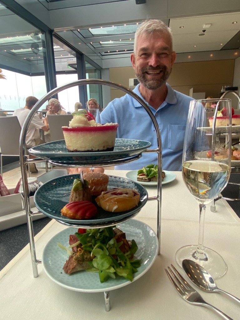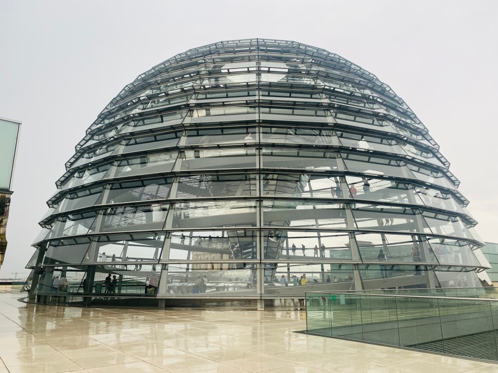 Next onto the Reichstag….seat of Germany’s parliament… is survived fascism, fire and bombardment, to become a symbol of a modern, politically transparent Germany. The magnificent rooftop glass dome was added in 1999 – it symbolises the transparency. Inside is amazing, you can walk all around the dome… it offers stunning views both inside and out. Even the storm that occurred while we were inside looked spectacular. We were booked in for a high tea at the dome restaurant which was a bit special.special.