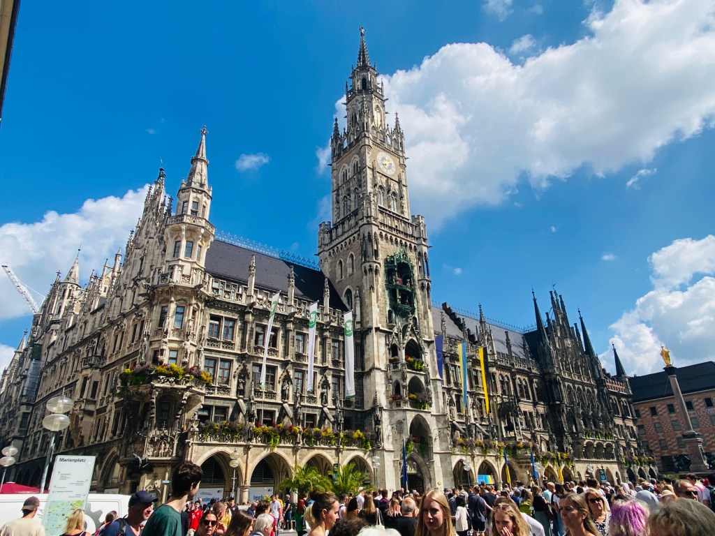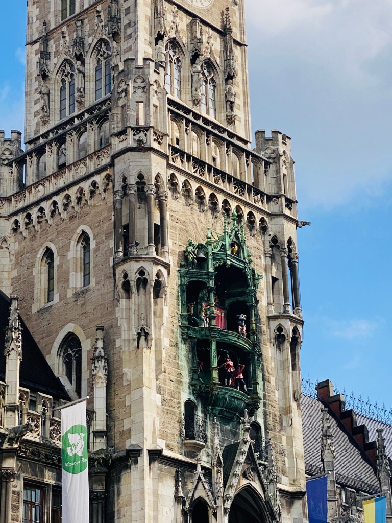 We had a lovely little explore around the town before heading back to the bus to Murnau, hopping straight onto the train back to Munich. With an hour to spare in Munich we did a quick walk to Marienplatz to see the clock on the New Town Hall do its midday performance. It is a re-enactment of the first Coopers dance which was held to boost the morale of citizens when the town was beset by the plague.