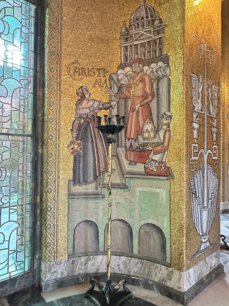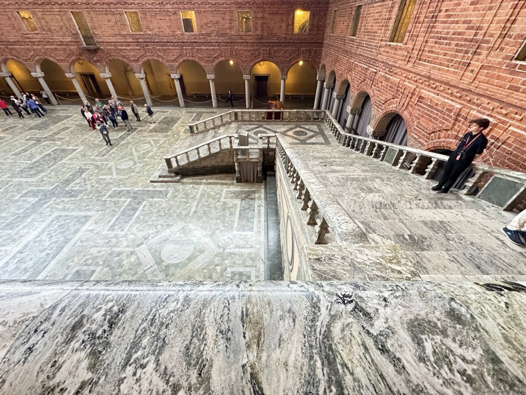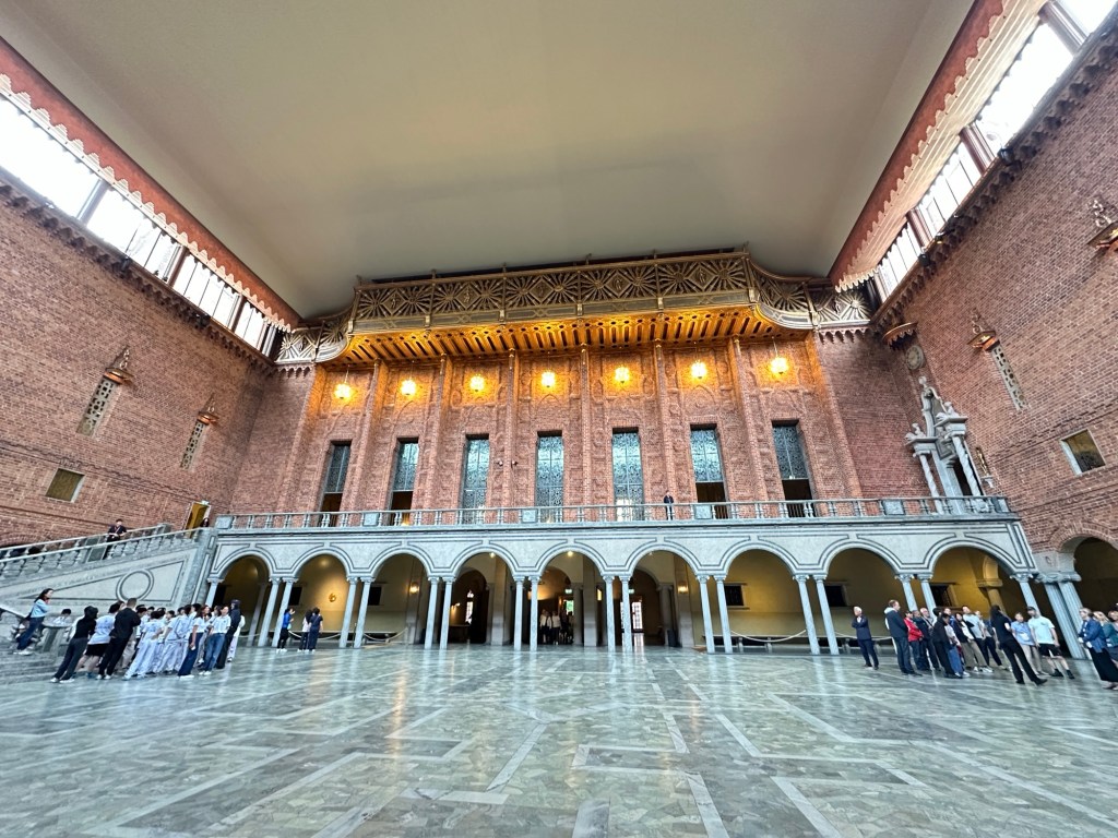 Our first stop was the City Hall – probably Sweden’s biggest architectural project of the 20th century. It was designed by Swedish architect Ragnar Östberg and is one of Sweden’s most important buildings in the national romantic style. As well as a work place for the city’s councillors, the Town Hall also provides a venue for special events, including the Nobel Prize ceremony on 10th December each year. The two most famous banqueting halls are the Blue Hall and the Golden Hall. The City Hall tower is 106 meters tall and crowned by an old symbol for Sweden – the three crowns. It really was a fascinating building to visit.