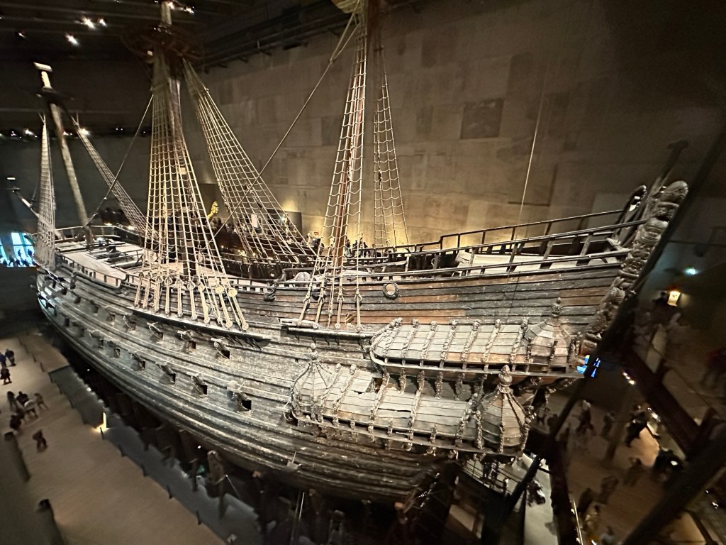 Next we took the ferry (a 10 minute ride) to the island of Djurgarden, which is where the Vasa Maritime Museum is. The museum displays the only almost fully intact 17th-century ship that has ever been salvaged, the 64-gun warship Vasa that sank twenty minutes into her maiden voyage in 1628. The Vasa was left lying 30 metres below the water. She was raised in 1961 and is now in the museum. Because of the low salinity of the Baltic Sea (and hence the ship worm couldn’t eat through the wood), the ship was well preserved considering it had been underwater for 333 years. Now the vessel has been painstakingly restored to 95 per cent of its original appearance. Great exhibition with a lot of information and free guided tours.