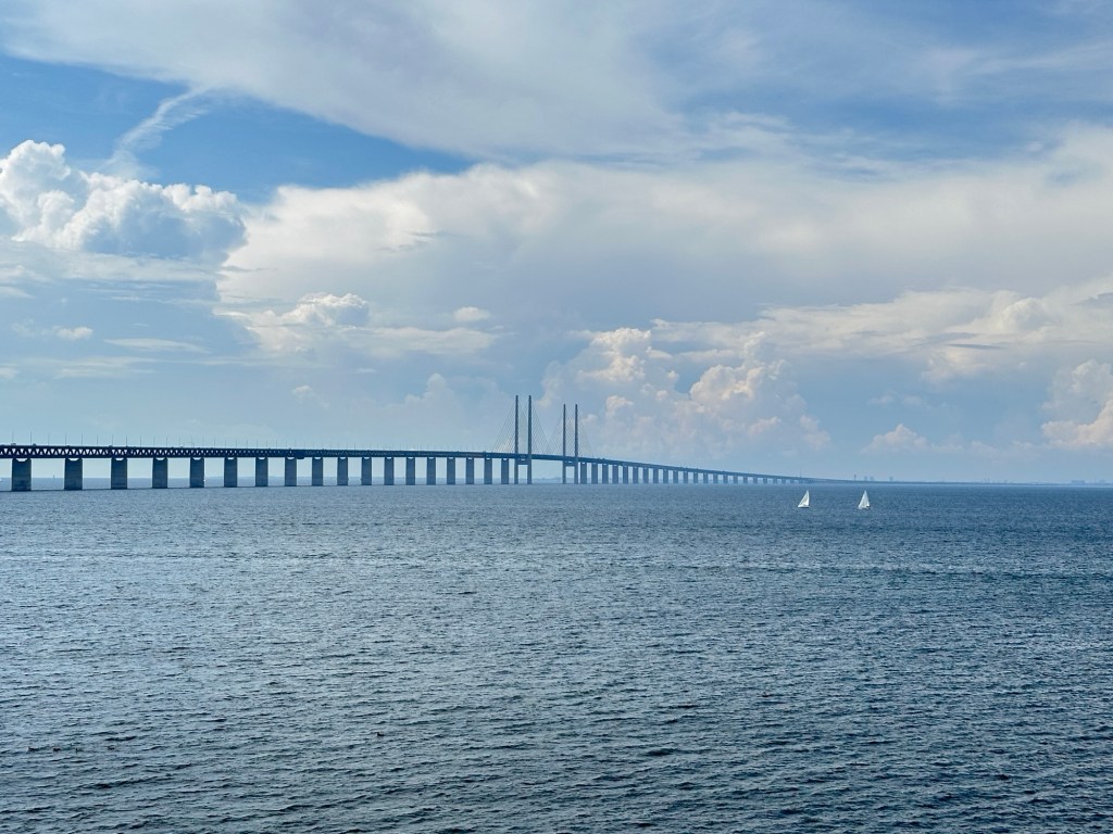 At Malmö, we have a coach to take us over the bridge to Denmark. The cablestay bridge is 16kms long. Great view of offshore windfarms that provide a significant proportion of Denmark’s power.