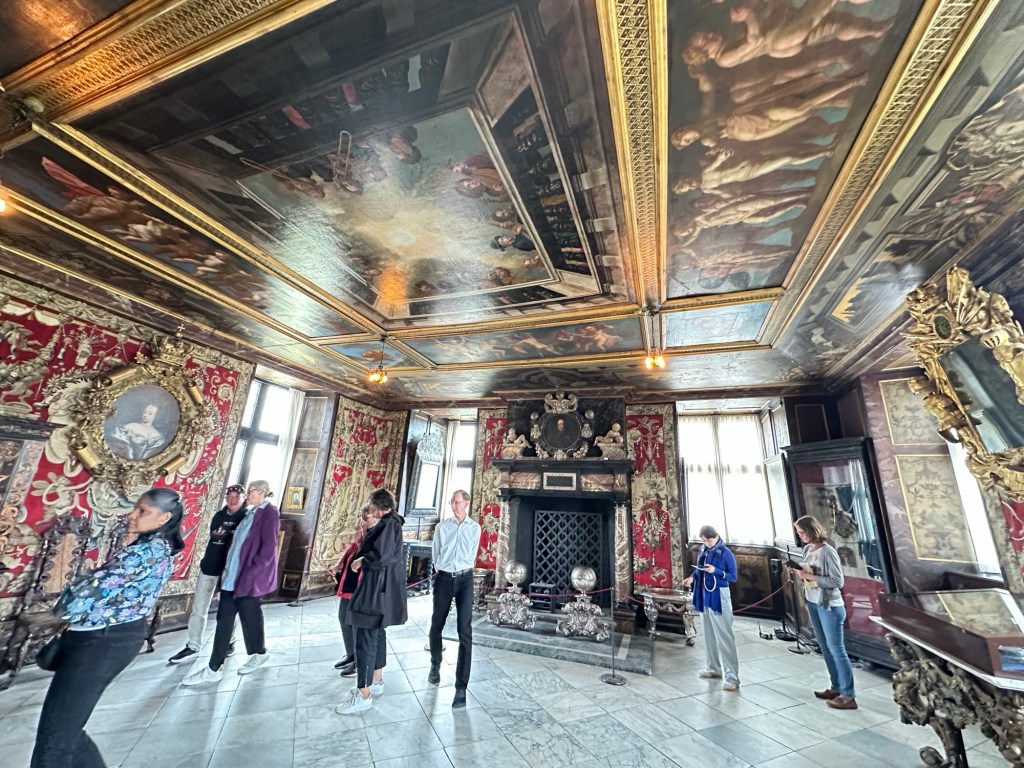Today we did a guided tour of Rosenberg Castle which sits amongst the King’s Garden. Built during the Renaissance period, this 400 year old castle was used as a summer home for the Danish monarchs. Inside, we could admire lavish portraits and tapestries, walk through long, adorned halls, and step inside the king’s private quarters. A highlight was the Knights’ Hall, complete with the coronation thrones and 3 life-size silver lions. In the vaults are the Danish Crown Jewels and Royal Regalia. The guide told us some animated stories about Royal life in days gone by.