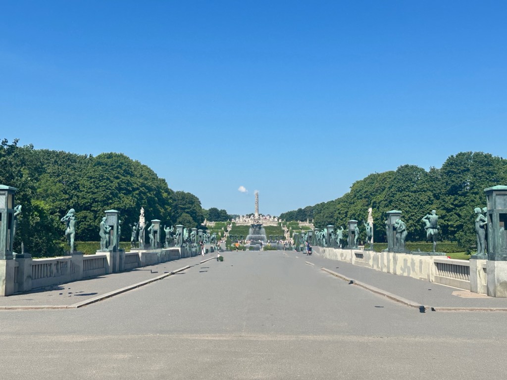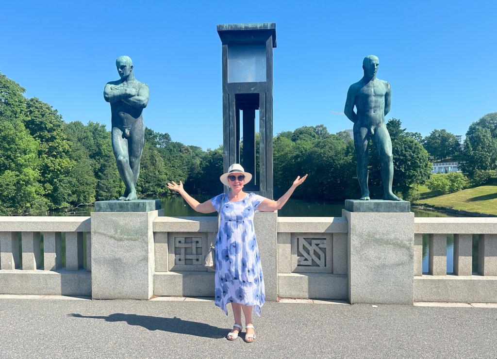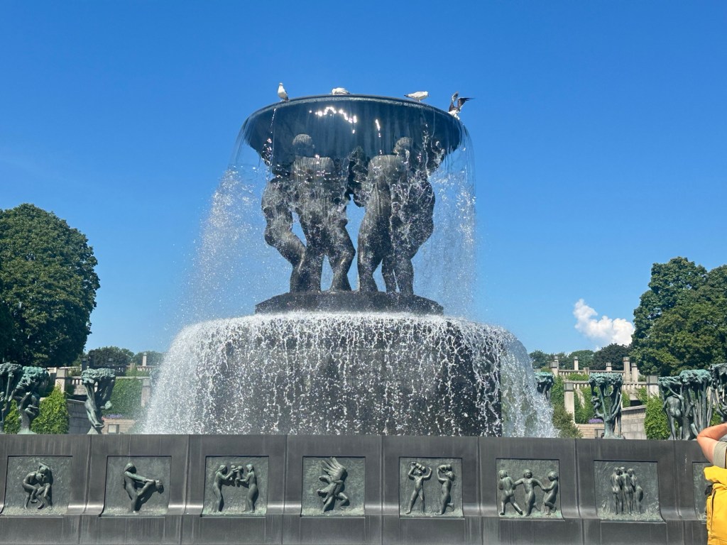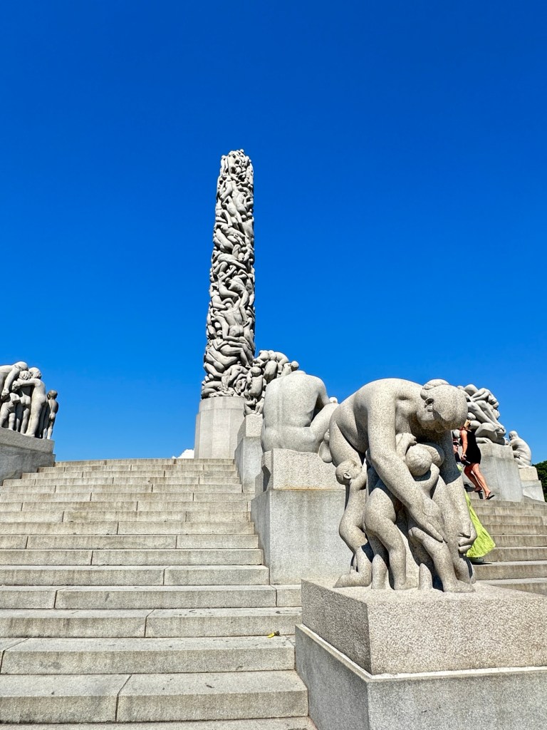We had an hour stop at Vigeland Sculpture Park. Gustav Vigeland dedicated much of his life to this unique park creating over 200 sculptures in bronze, granite and wrought iron. In addition to carving the sculptures he designed the 80 acre park that surrounds them. The park was completed in 1949. The statures represented life, relationships, family, and the circle of life. The Monolith stands at the highest point in Vigeland Park, and measures 17 metres above ground. The sculpture depicts 121 human figures clinging and floating together. The sculpture is carved out of one stone block, hence the name. An absolutely fascinating park, hard to imagine one person could create so much!