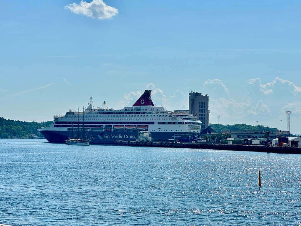 Back to the hotel where we were picked up and transferred to the ferry terminal for our overnight cruise on the Nordic Pearl to Oslo. This “ferry” is actually a large cruise ship which has sailed in the Scandinavian waters since 1994. It can accommodate over 1700 passengers and 450 cars, and takes 17 hours to make the journey. In that time, we enjoyed the sail away, had a buffet dinner with every variety of seafood, played song trivia, slept for the night, and finished up with a relaxing breakfast the next morning whilst admiring the scenery as we sailed through the fiord. All very civilised, and very much like a “real” cruise… except for the very small cabins! But it was just for one night!