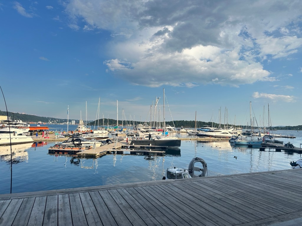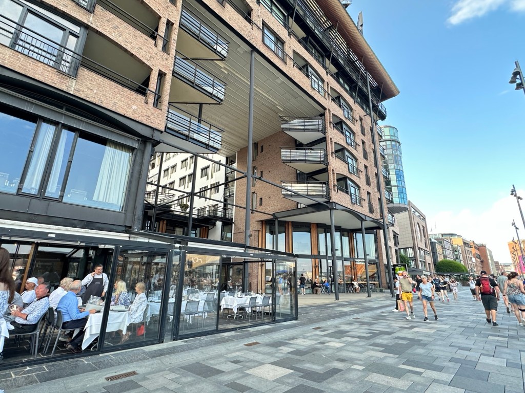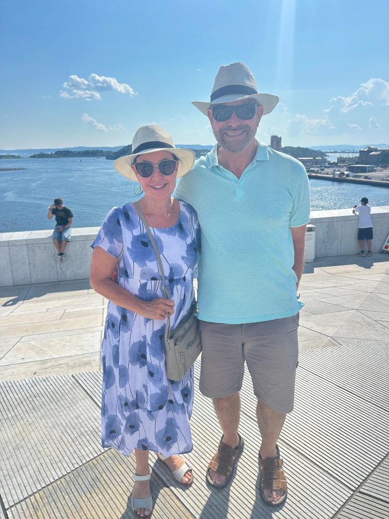 We then turned to the old Waterfront area, Aker Brugge – this fusion of “old meets new” is now a buzzing neighbourhood of trendy shops, bars and restaurants. We had dinner at an Asian restaurant- normally we’d always try the local food, but it was so hot, we settled for a light duck salad, which was lovely.