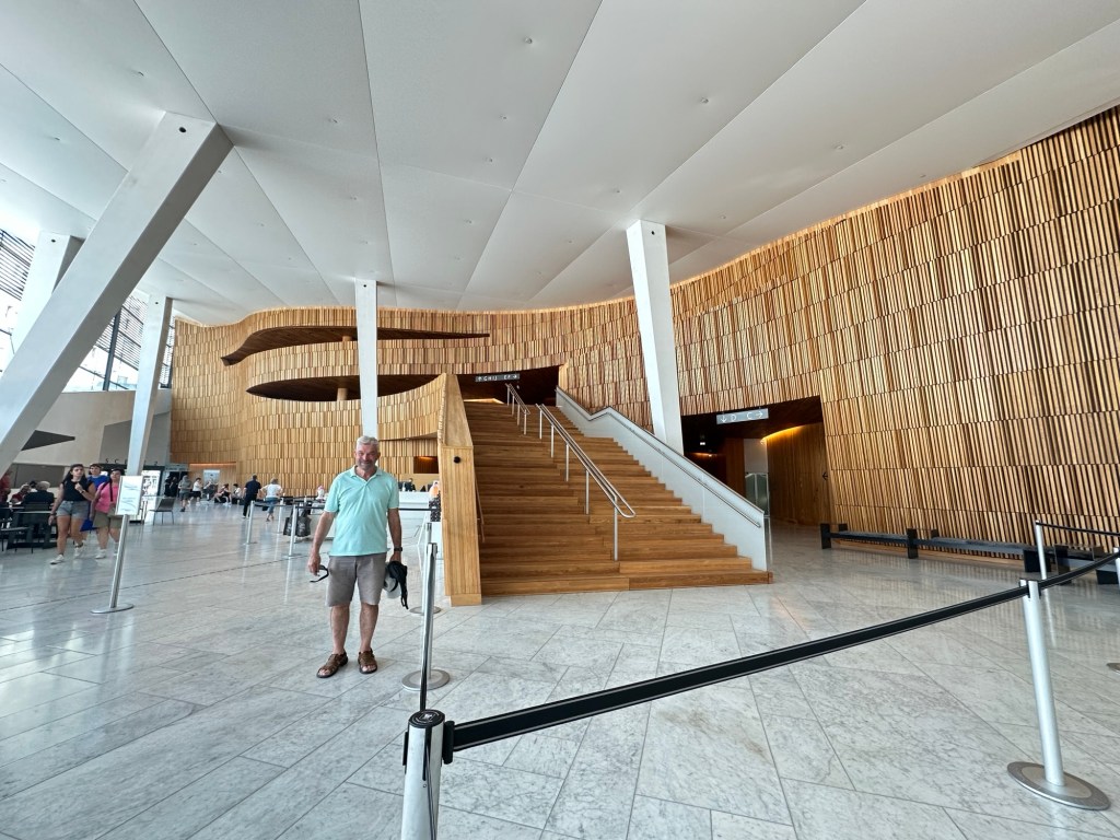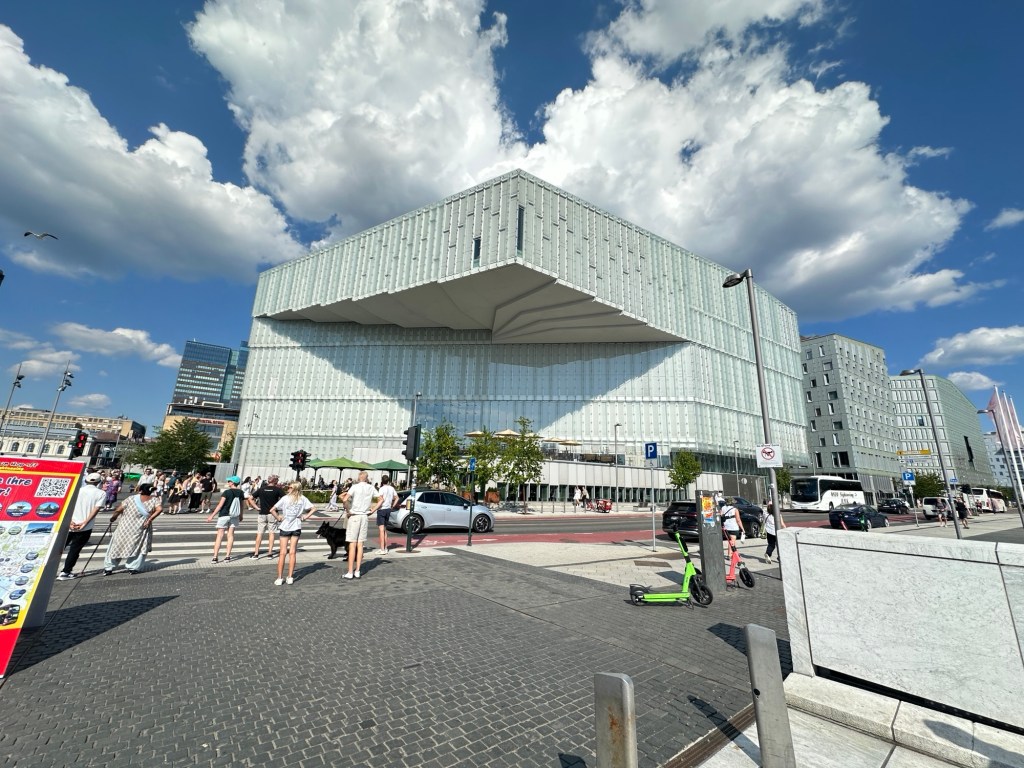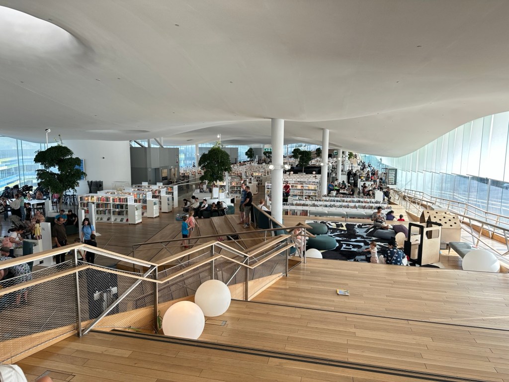 We check into the Thon Opera Hotel at 2pm, then have the afternoon to explore Oslo by ourselves. Across the road from the hotel is Deichman Library – we were recommended to pay a visit. It is a modern and dynamic library that contains not only Deichman’s extensive book collections, but also a movie theatre, media workshops, gaming zones, lounges and a restaurant – among other things, and over five floors. We had a coffee stop there – a very nice coffee, but then it would want to be for $9 a cup!