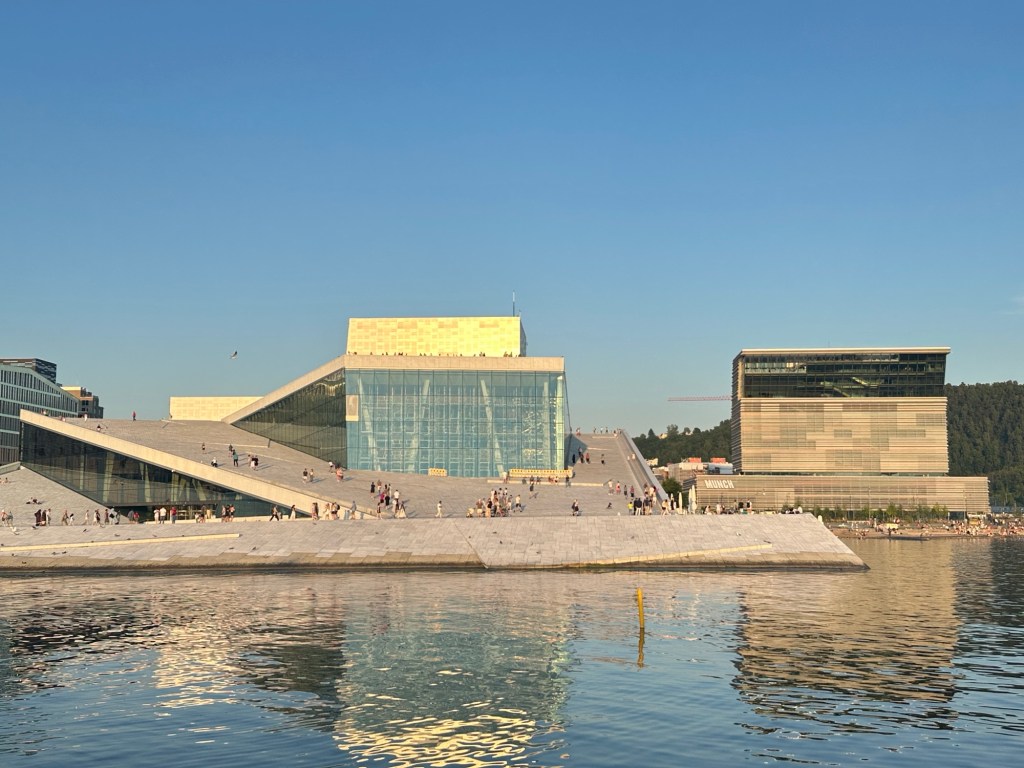 The Opera House is next to the library on the fiord waterfront. The vast, white, angular architecture seemingly arises from the waters of Oslo Fjord. The sloping roof, which is meant to be walked on, is covered in white marble and granite, creates the illusion of glistening ice, like a glacier rising from the fiord. The intention of the architect was to create a new landscape that would draw together the natural beauty of Oslo Fjord and the city. Great view points from the rooftop. Inside the Opera House is an unusual wooden theme which is a soft reminder of Norwegian nature and history.