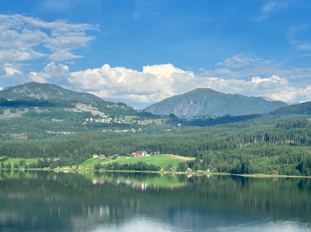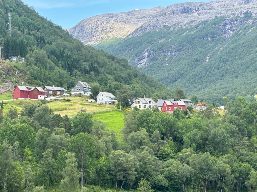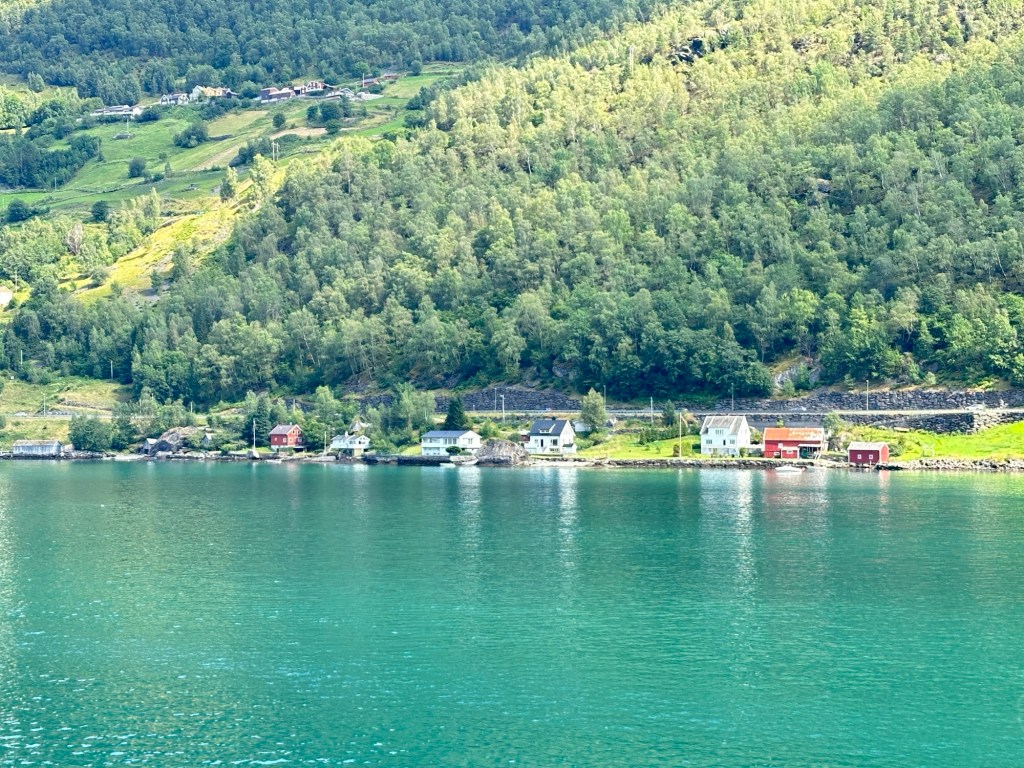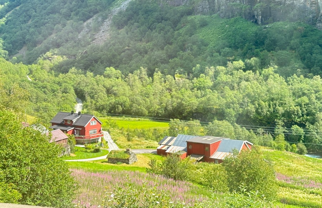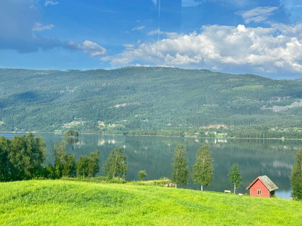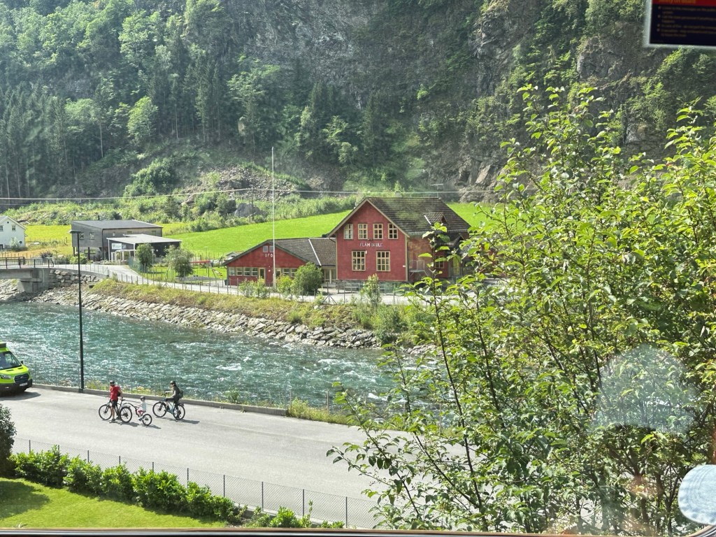 On arrival at the pier in Gudvangen, we transferred to a coach bus to take us on to Voss – more stunning scenery along the way – mountains, lakes, gorgeous villages, the lush green vegetation. Just loving what I’m seeing.