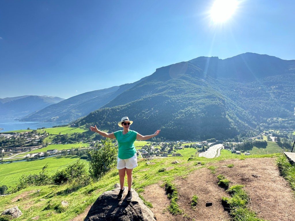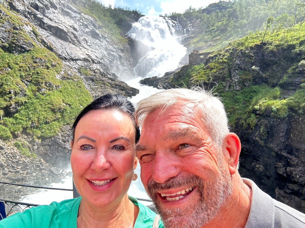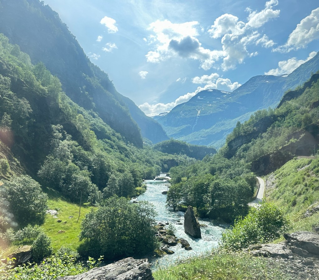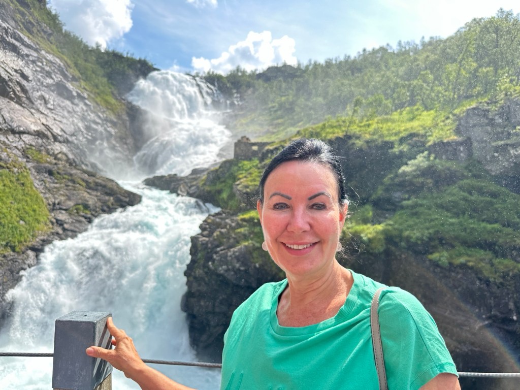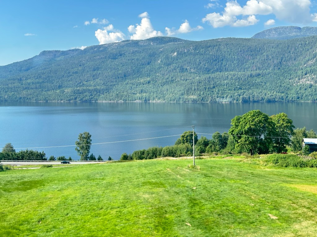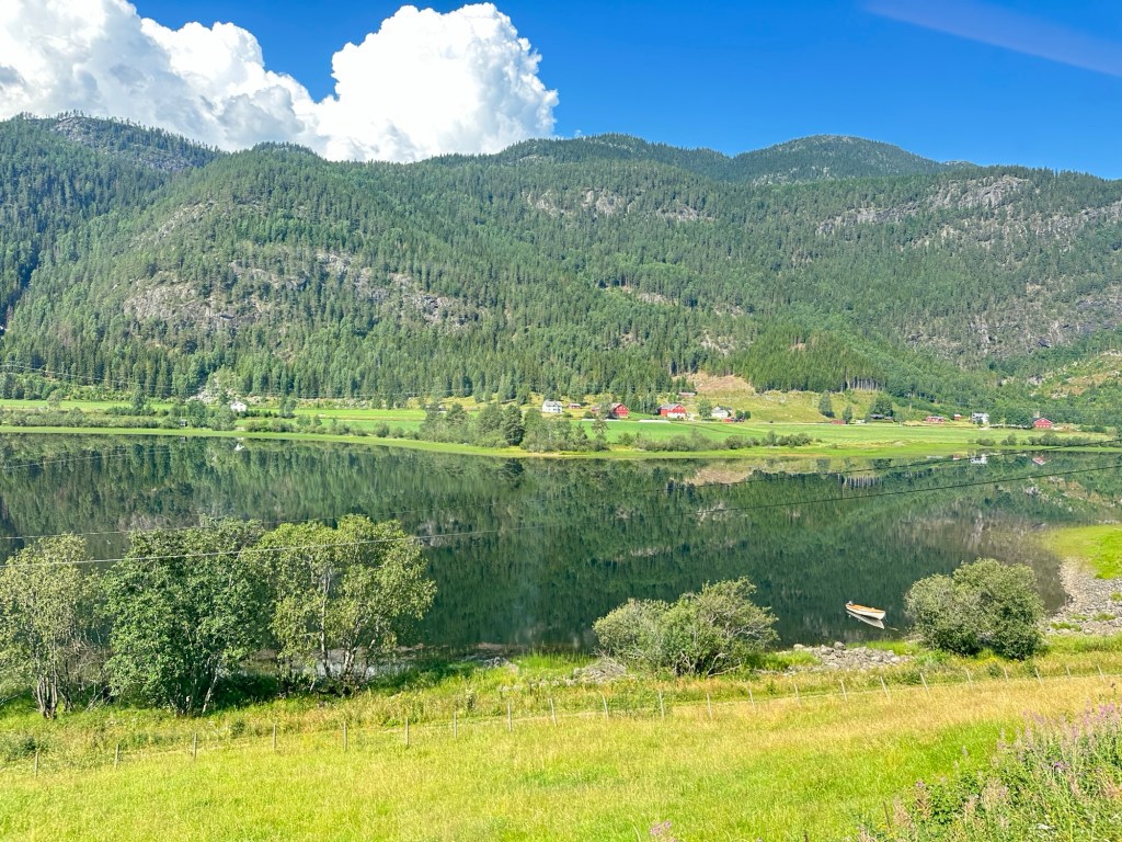 On arrival at the pier in Gudvangen, we transferred to a coach bus to take us on to Voss – more stunning scenery along the way – mountains, lakes, gorgeous villages, the lush green vegetation. Just loving what I’m seeing.