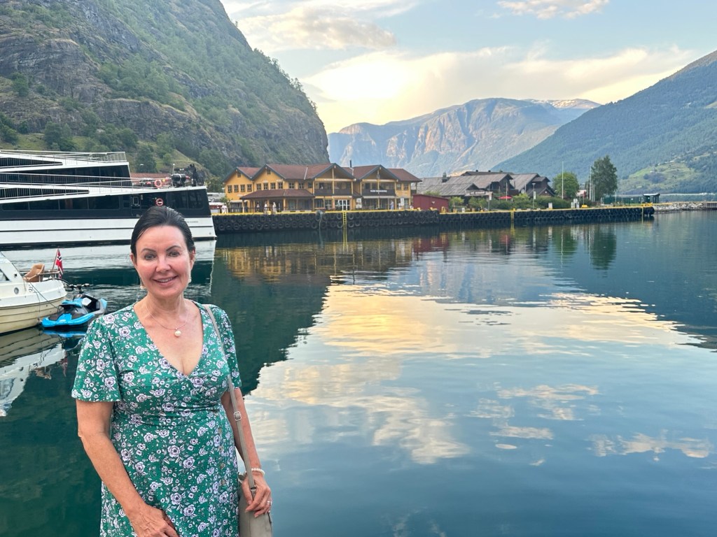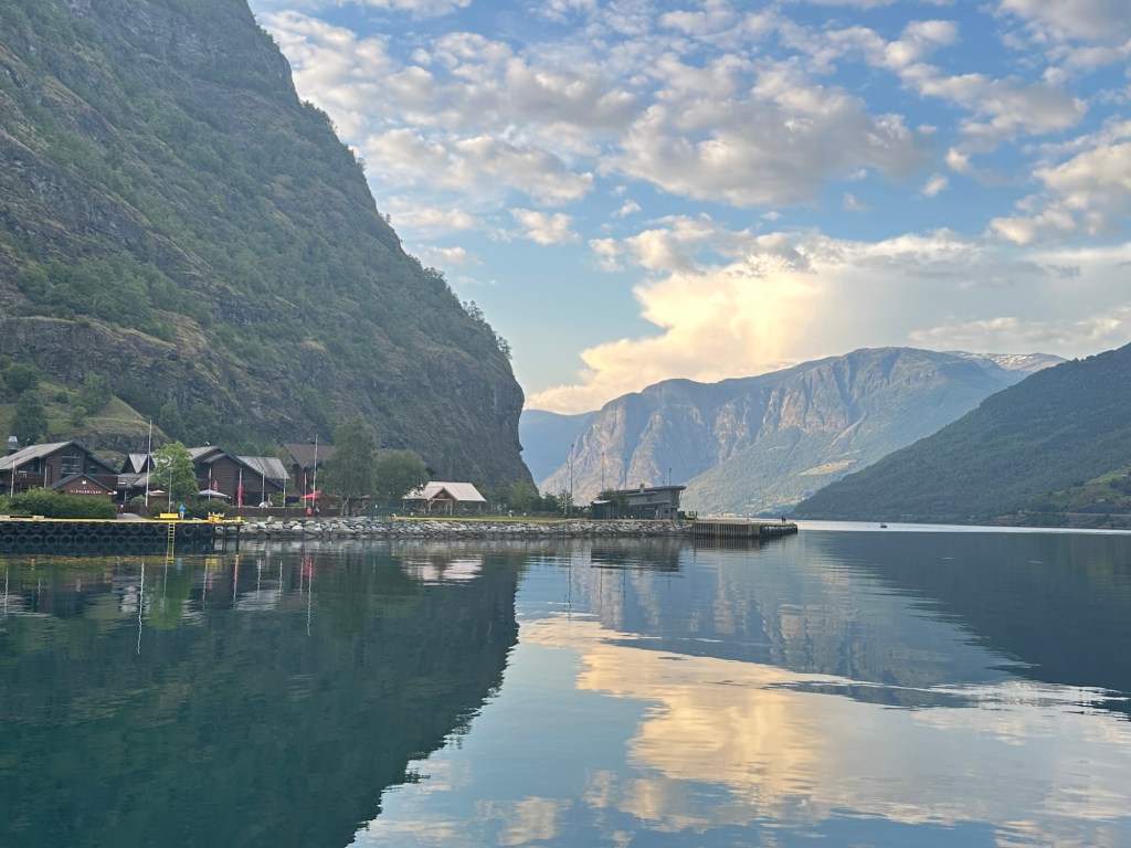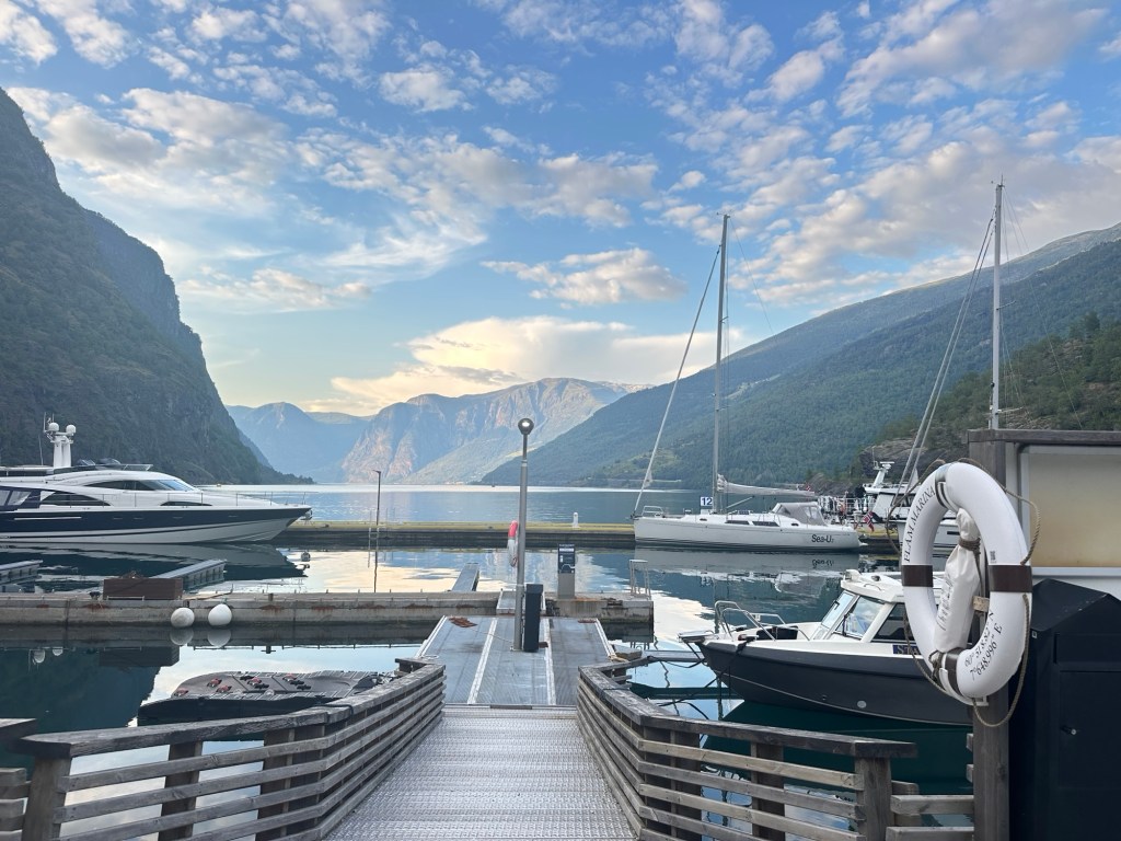 After dinner, Frank and I went for a walk around the marina. Flám has a population of only 400. Luckily for us, no cruise ships were in for the two days we were there, as apparently you can’t move when the ships are in port. There are people who day trip there for the day via bus or train as well. But at night, it is so quiet and peaceful. It felt like we had the whole village to ourselves. The marina was serene in the soft late evening light – it doesn’t get completely dark until after 11pm at the moment. It was just beautiful.
