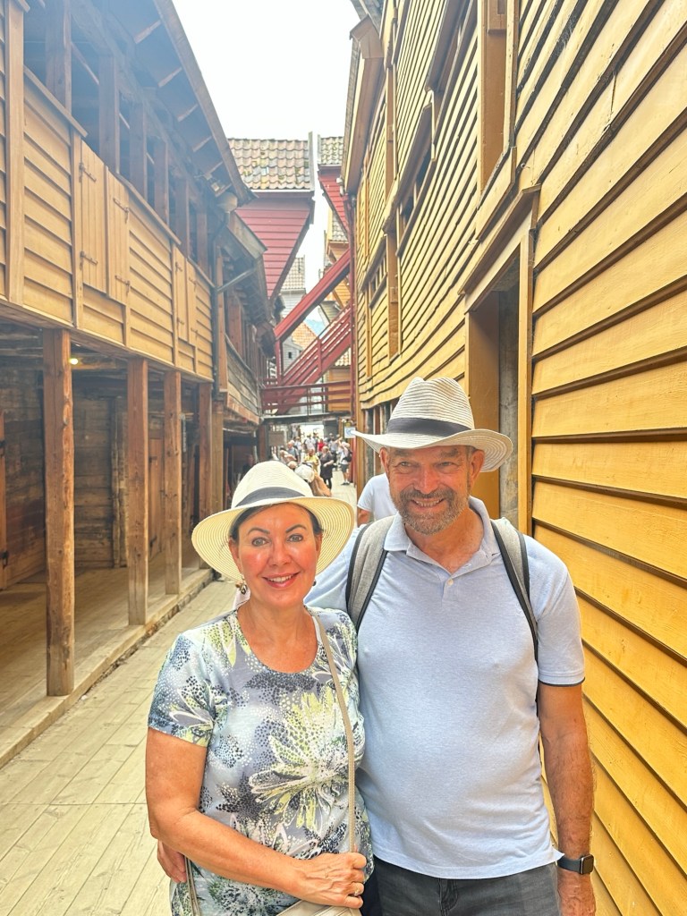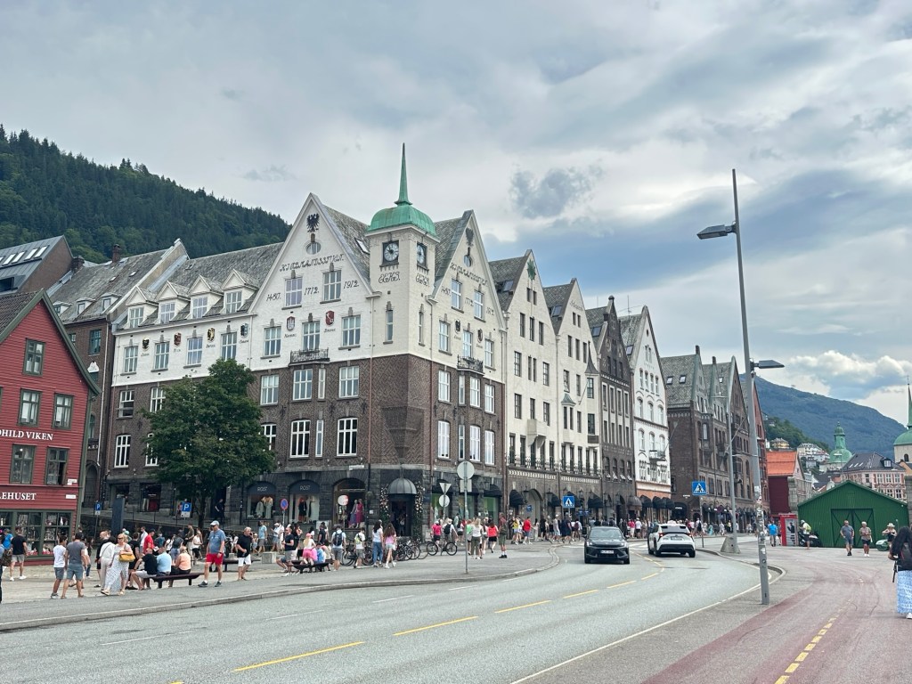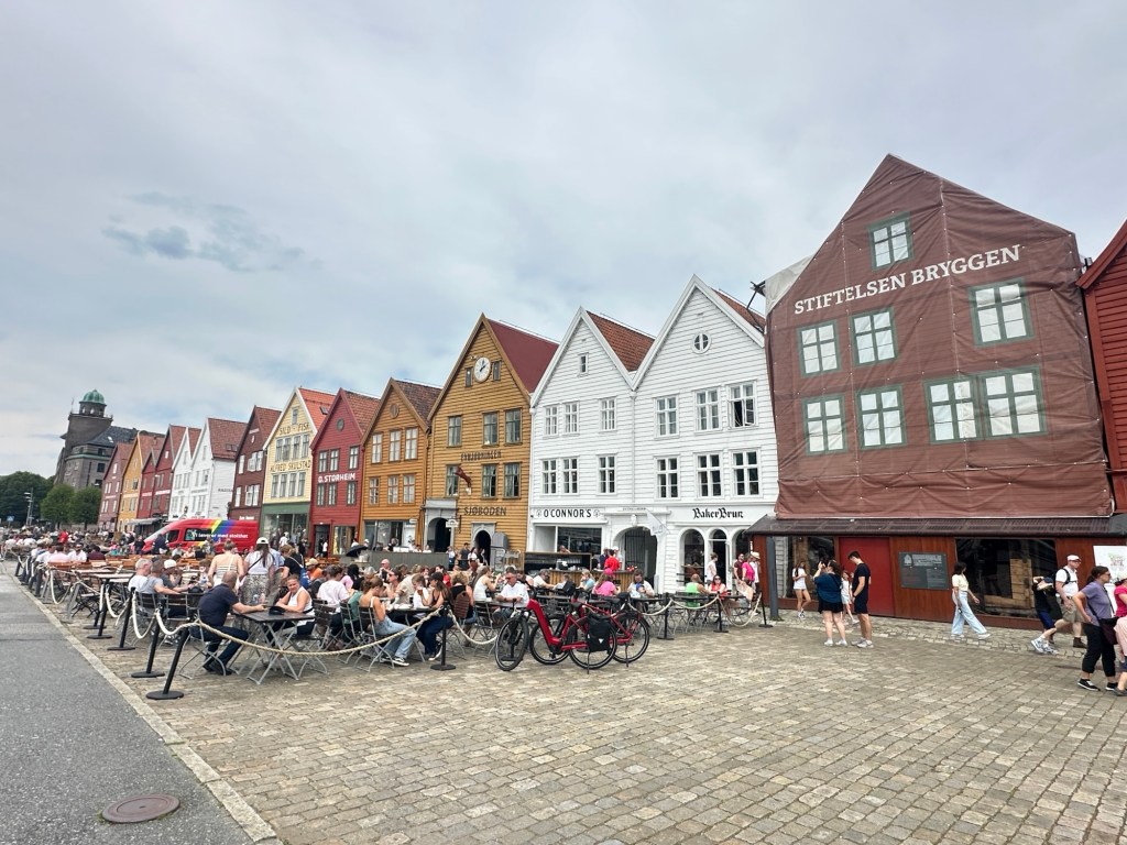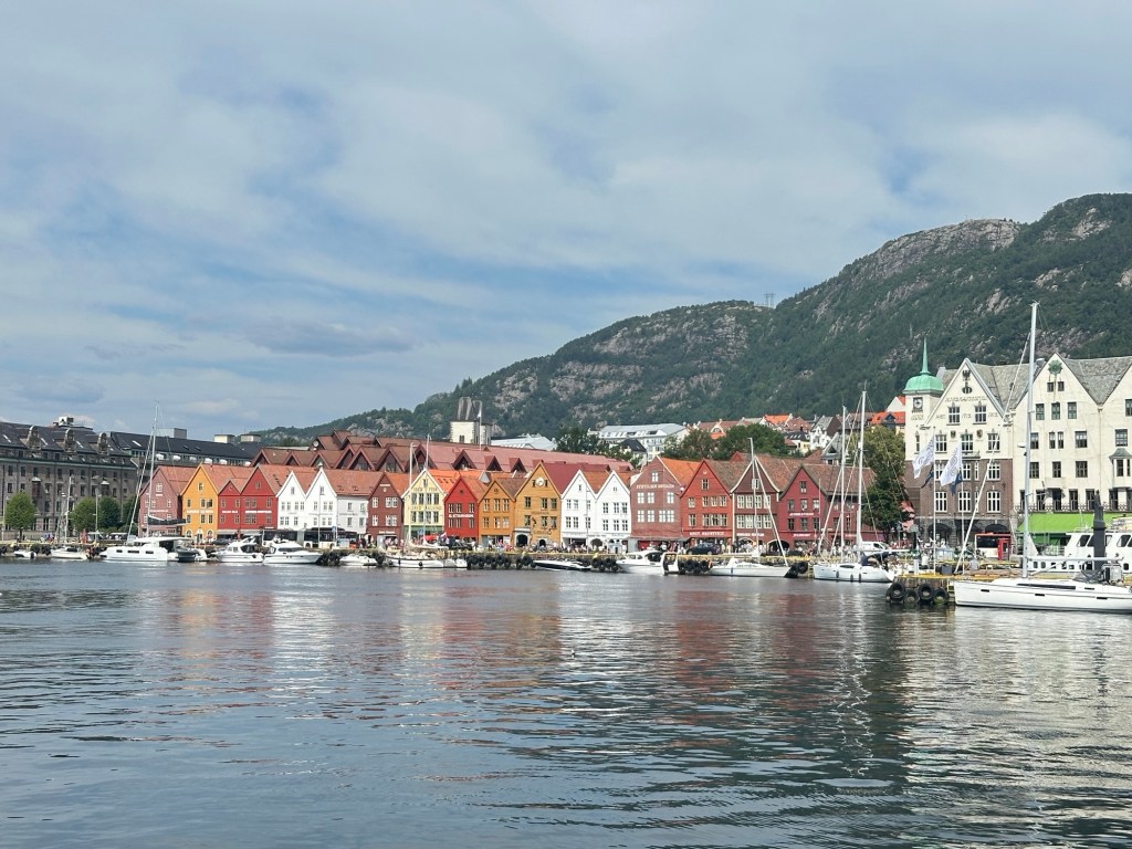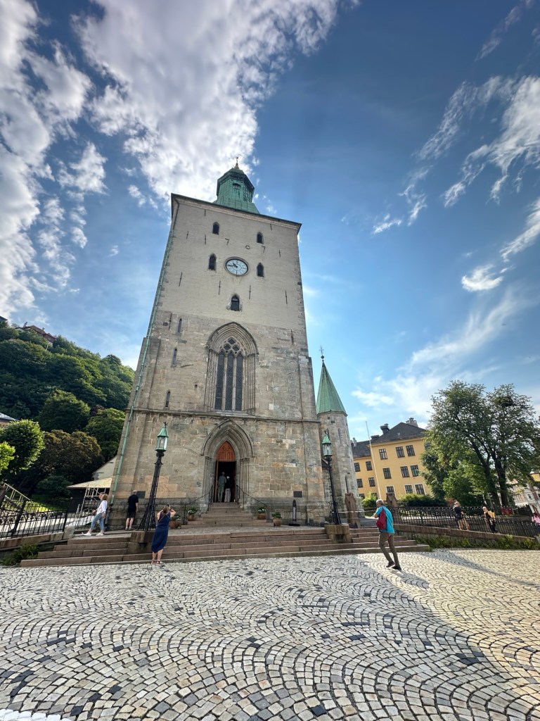 Bergen, the “Capital of the fjords”, is Norway’s second largest city while still enjoying the charms of a small town. Today was a day to experience its beauty and character first-hand with a walking tour with a local guide. We had been here before 8 years ago, but in January – completely different climate, very cold, wet and only three hours of sunlight per day. We had the exact opposite today!