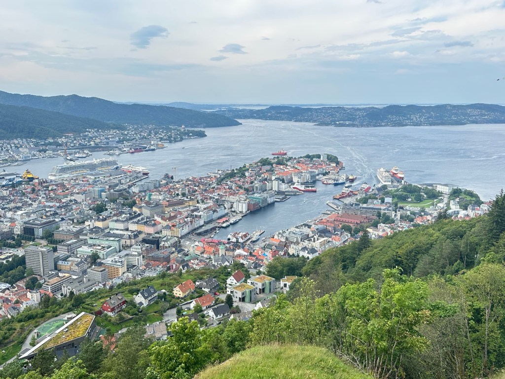 We then took the funicular up 320 metres to the nearby mountain, Fløyen, for stunning panoramic views over the city and surrounding fjords.