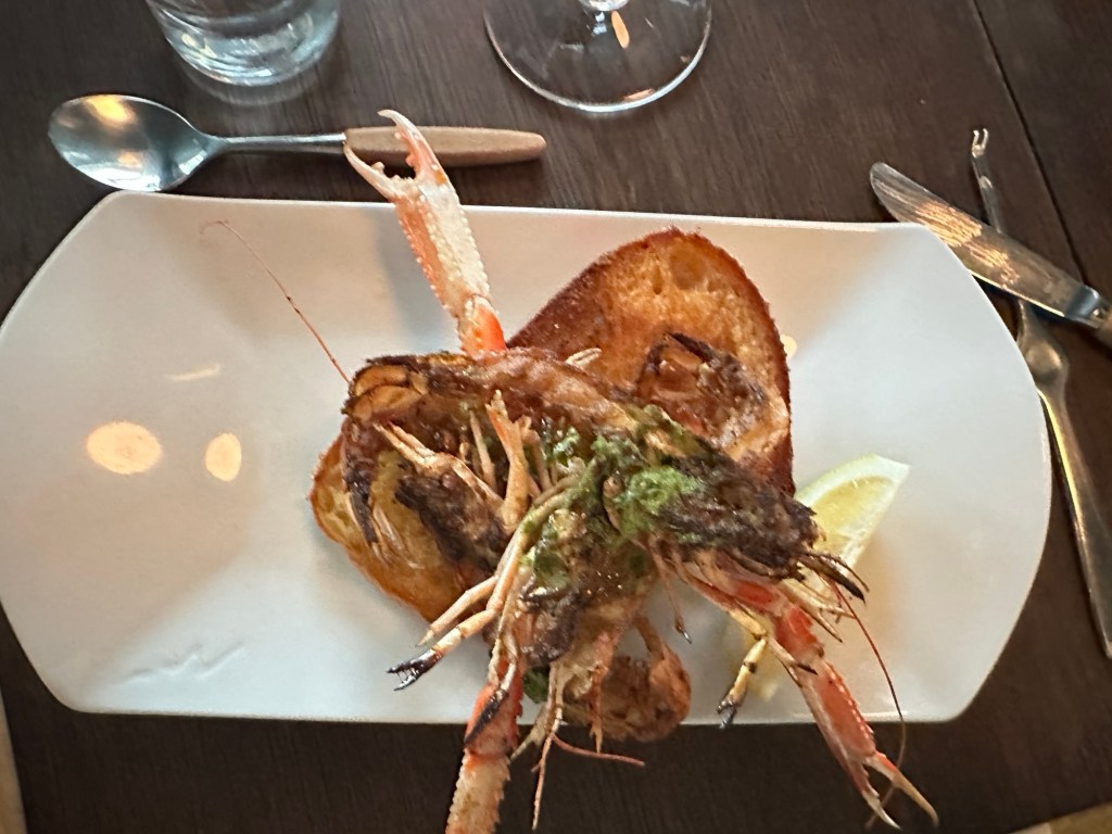 In the evening, we shared one last dinner with the group at a lovely traditional Norwegian restaurant. Garlic flavoured langoustine was the starter, wolffish and vegetables for the main, and a deconstructed lemon meringue tart for dessert – all traditional Norwegian foods and flavours. Very nice, though the langoustine proved a lot of effort for the amount eaten!