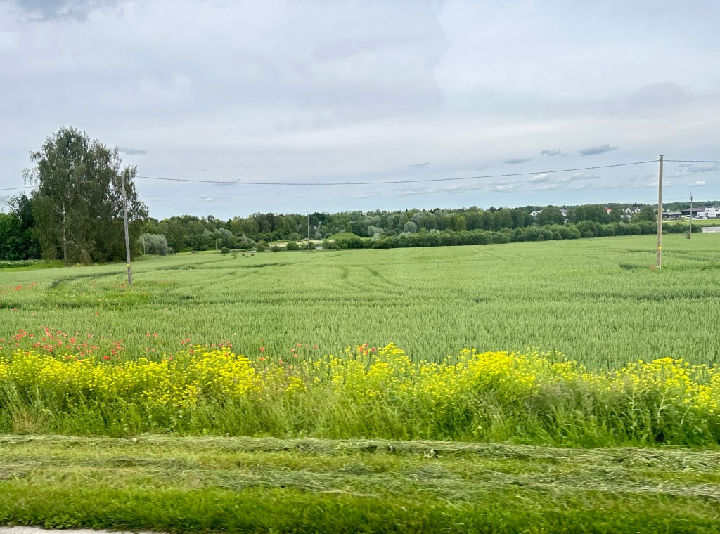 More pine forests, farmlands, undulating roads lined with oak or linden trees, spruce hedges, and an extraordinary amount of wildflowers, including poppies. Fields of rapeseed and lupin were a picture.