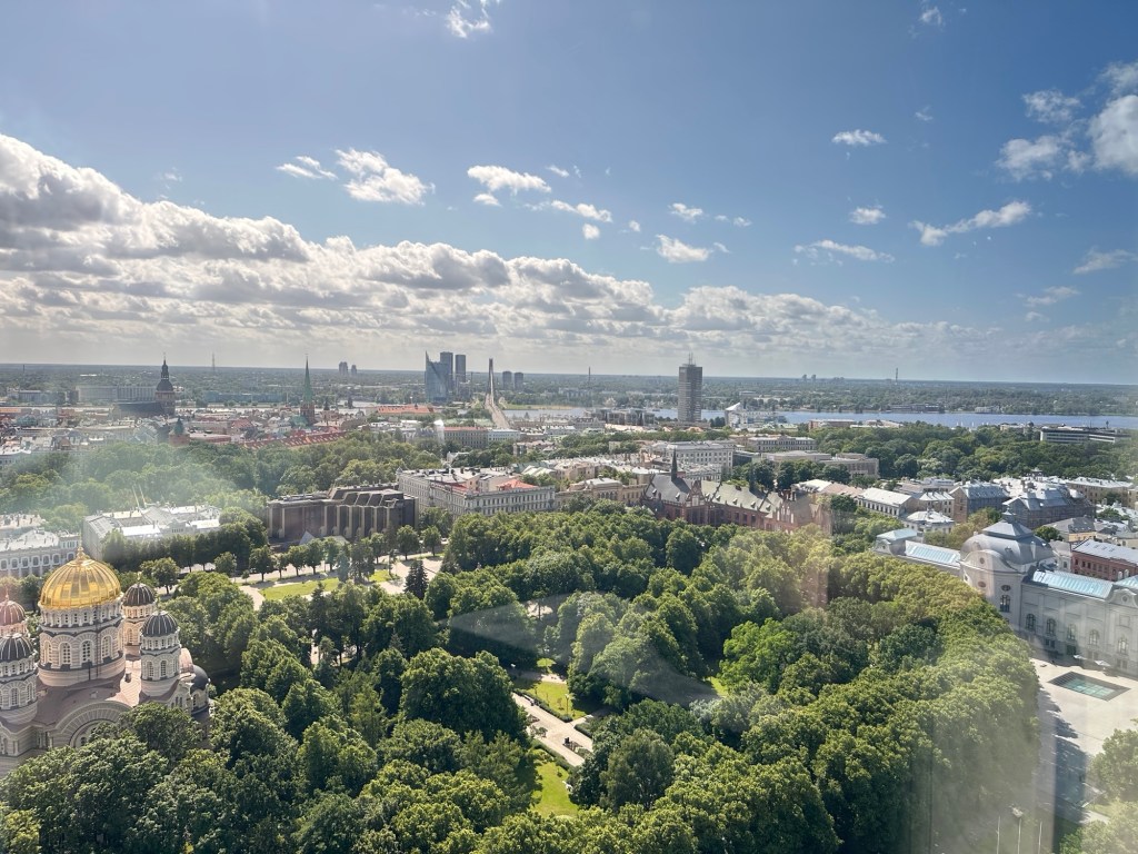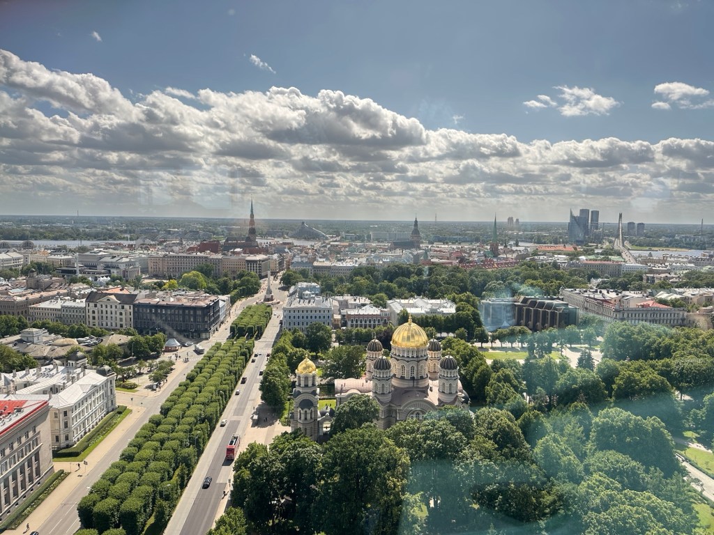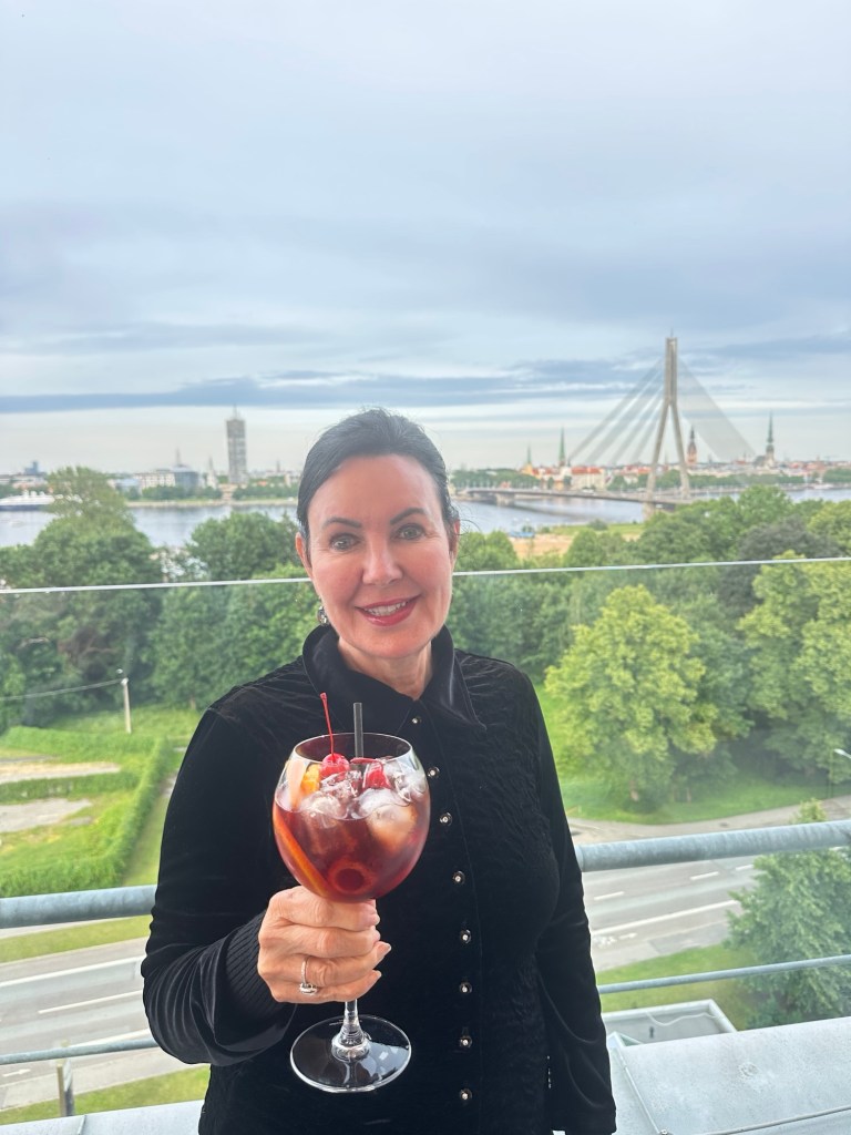 Another hour’s drive and we are in Riga where we checked into the Islande Hotel. It was 7pm by this time, so we went straight up to the 10th floor where the restaurant was, for dinner. Fabulous views over Riga. Really nice food, a few wines, and a fun night had by all. I had a cocktail with the Latvian herbal liqueur – Black Balsam, cherry flavour.
