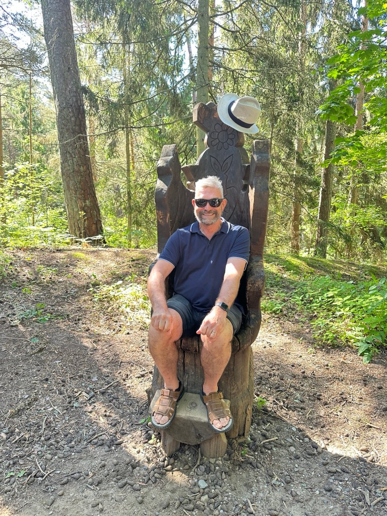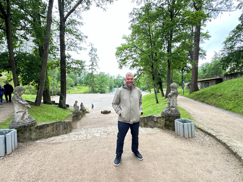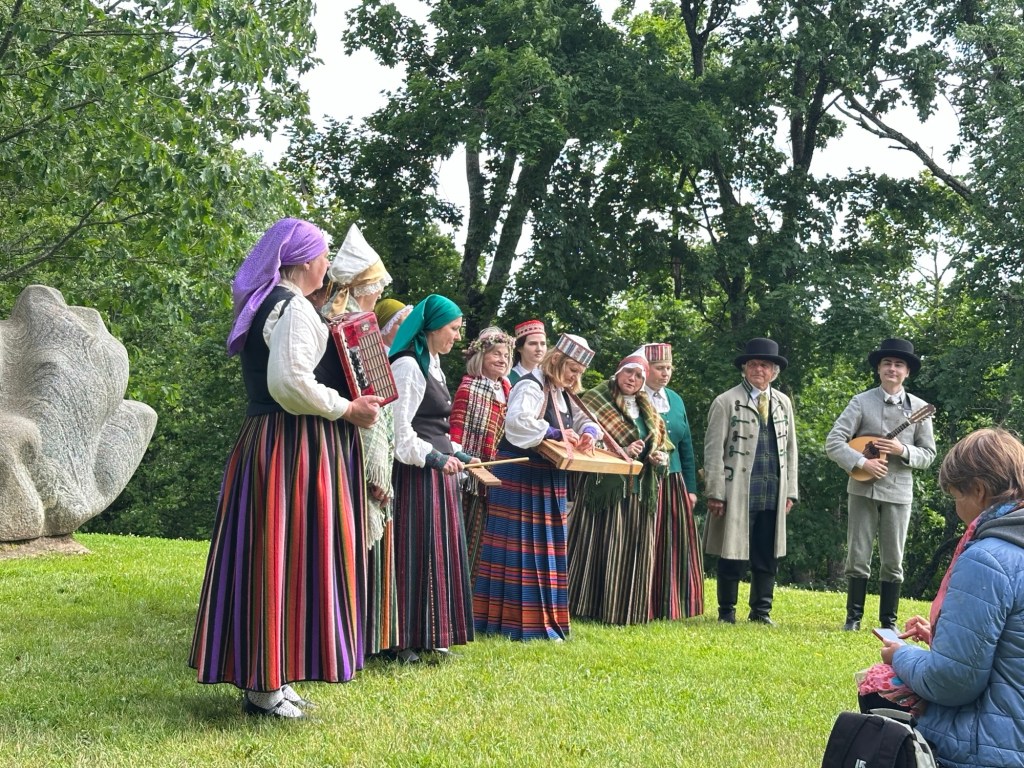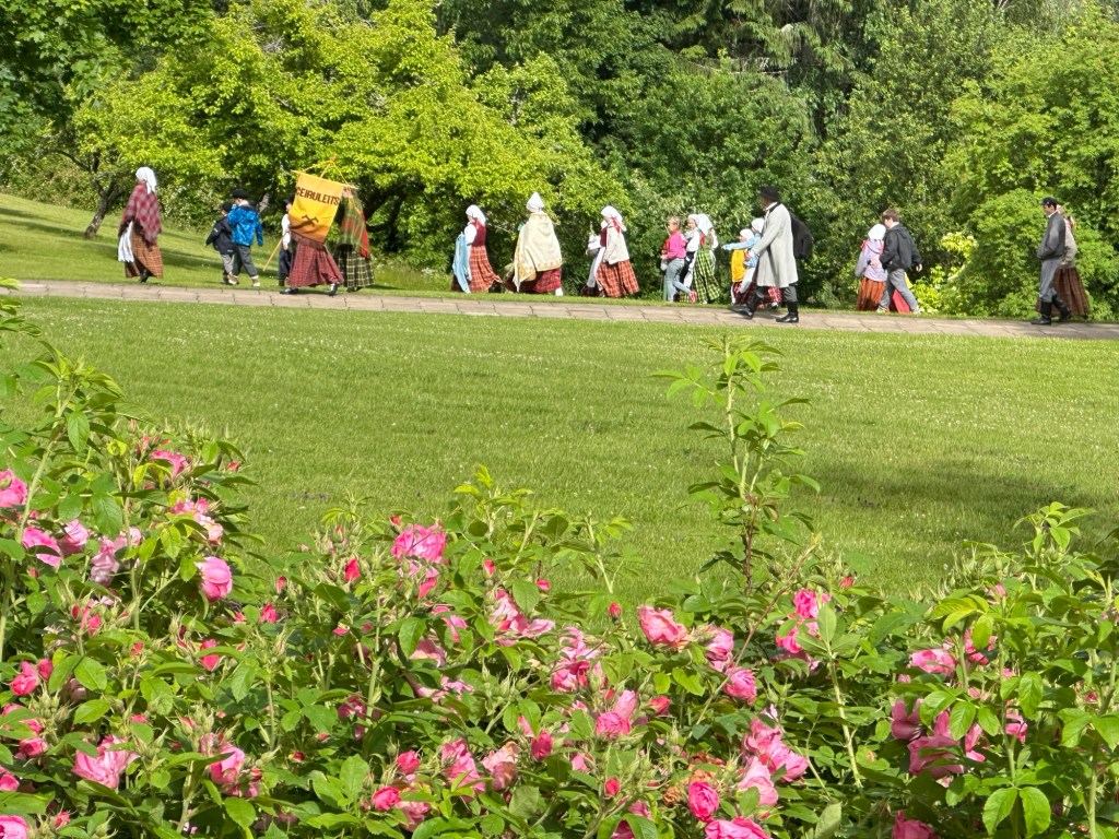 Also in Gauja National Park was Turaida Museum Reserve which included Turaida Castle built in 1214 by the Brotherhood of the Sword, some outbuildings, the Turaida Church built in 1750, and the Folk Song Park with its 25 rock sculptures. Today there happened to be a Song Festival event so we were treated to a large number of singing nationals in traditional costume. It was lovely. The nature trails leading through the park were at least fifty shades of green, and again flowers everywhere. Apparently there are only three months of the year where there are no frosts, so everyone loves this time of year.