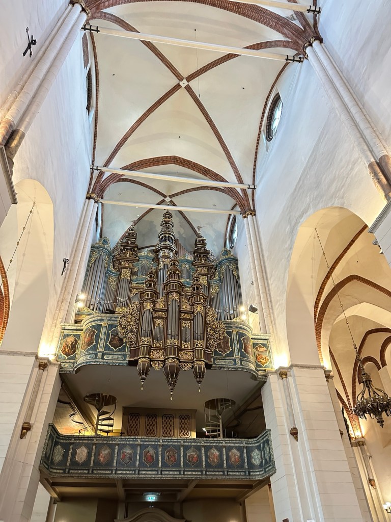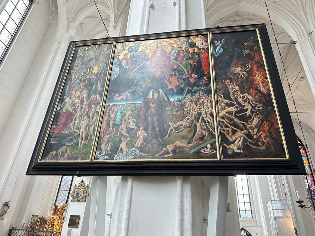 We did go back to some of the sites we had seen already, however Bart gave us more details. He also took us to St Mary’s Basilica, built circa 1379, which has been used jointly by Catholics and Lutheran in the past, now Catholic since 1945. It is considered the largest brick temple in Europe. Inside is a copy of The Last Judgement made in 1472 by Gabs Memling. Also, an astronomical clock made in 1467 by Hans Duringer – it wasn’t working for 500 years, but they took all the parts to Prague (where there is a similar clock) and got it going again.