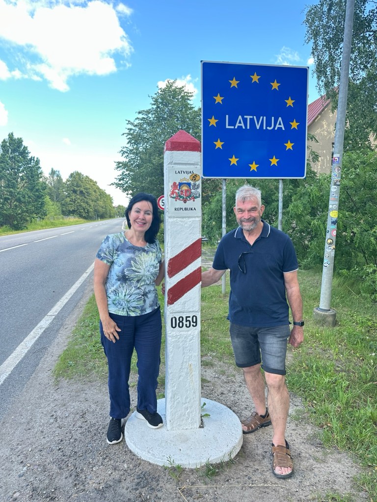 A very scenic drive this morning as we leave Estonia and enter Latvia at Valga. At the border there is a novel wooden swing which when you swing on it , you are in Estonia one second, then Latvia next second , and so on! Very amusing.
