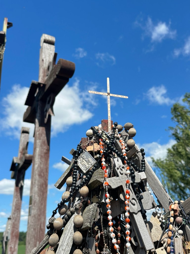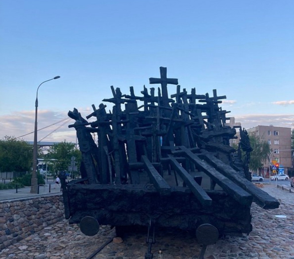 Drove past the Monument to those Fallen and Murdered in the East – this monument takes the form of a typical railroad wagon in which Poles were deported into the depths of the Soviet Union (Siberia). It is filled with a pile of crosses symbolizing the hundreds of thousands of Poles transported east in cattle vans. Many died there of hunger, overwork, or disease.