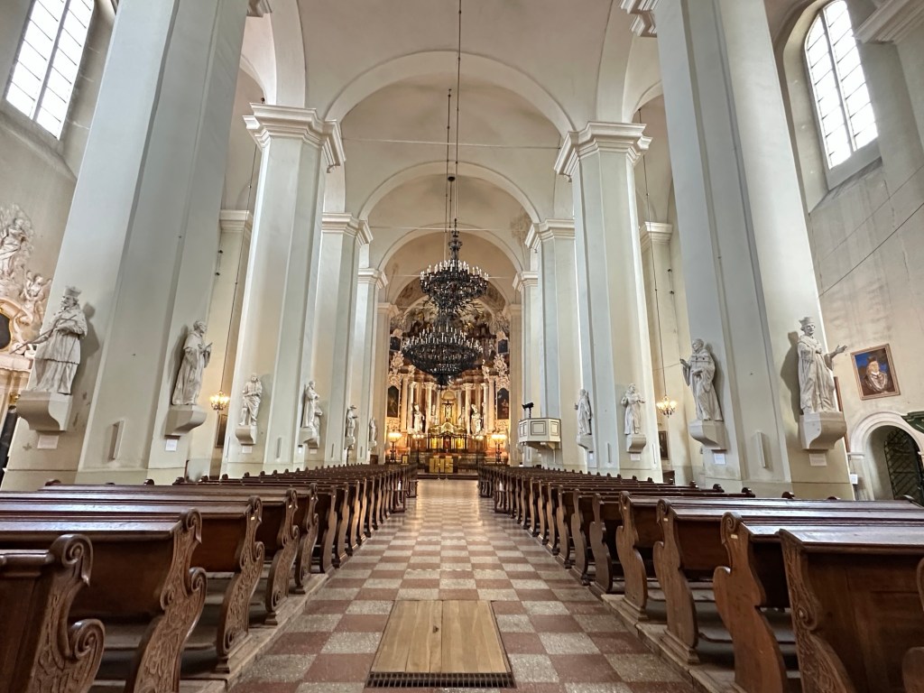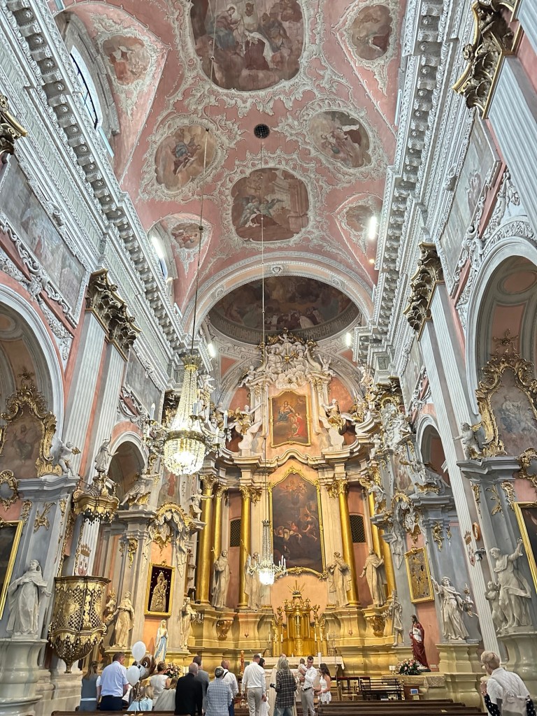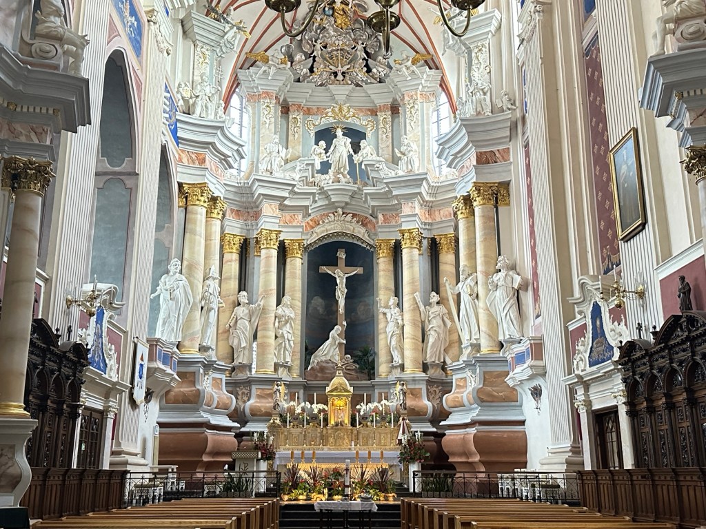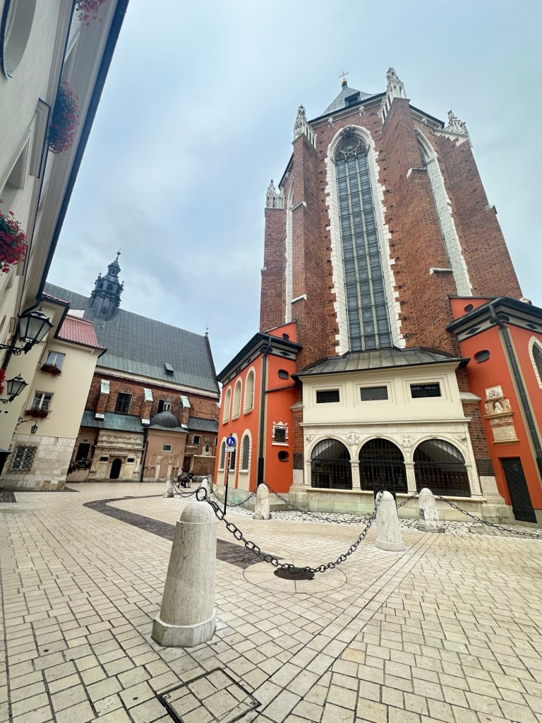 St. Mary’s Basilica, with its two impressive Gothic towers, is set at an angle on the east side of Market Square. The left-hand tower is topped by a spire added in 1478. It served as the city’s watch tower and today a bugle call is still played every hour – which we heard while we were eating dinner. We had a look inside the church just as a wedding was finishing up. Nothing like sound of the wedding song ringing out on the church’s organ pipes, especially such an impressive church.