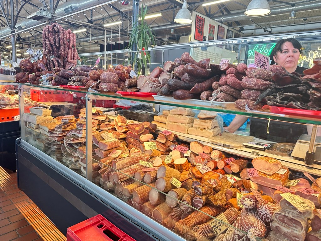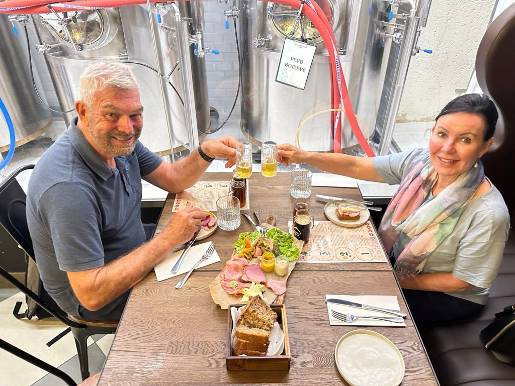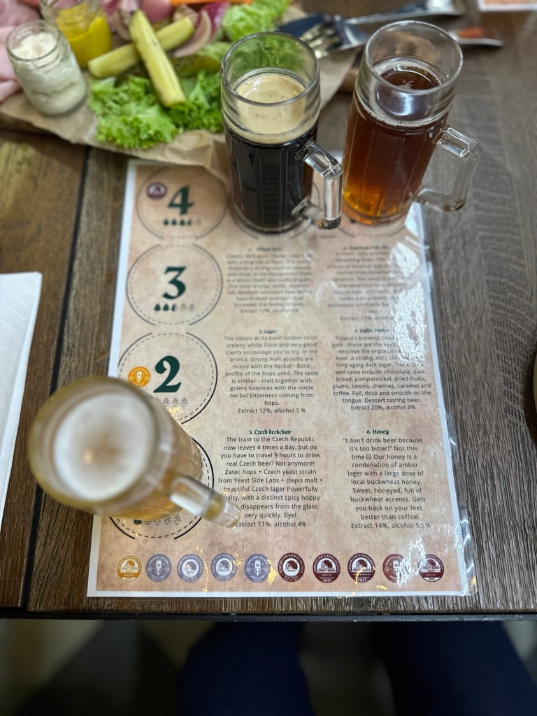 Bart took us to a restaurant in the basement under Artus Court. Here we had three craft beers to try accompanied by a typical Polish antipasto platter – Polish smoked sausage and meats, cheese and pickled and preserved vegetables.