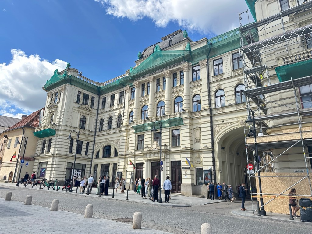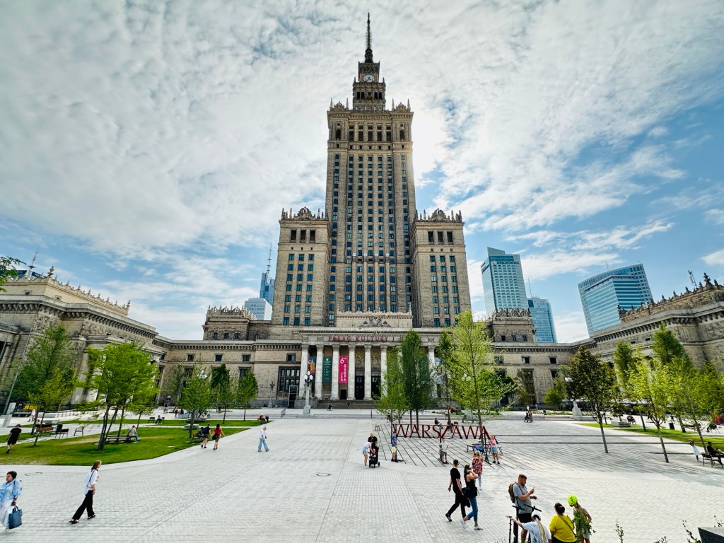 We started at the Palace of Culture and Science, which was across the road from our Airbnb. Possibly the most recognized building in all of Warsaw, this monolithic structure was a “gift” from the Soviet Union to the city’s residents, and intended as a monument to “the inventive spirit and social progress.” Built in 1952–5 by the Russian architect Lev Rudniev, it was the second-tallest building in Europe at that time and resembles Moscow’s Socialist Realist tower blocks. This symbol of Soviet domination still provokes extreme reactions among Varsovians, ranging from admiration to demands for its demolition. Since the end of the Soviet era, the building’s role has changed: the tower itself now provides office space, and the Congress Hall is a venue for concerts and festivals. It remains a cultural centre in other ways, housing the Theater of Dramatic Art, a cinema, puppet theater, technology museum, and a sports complex.