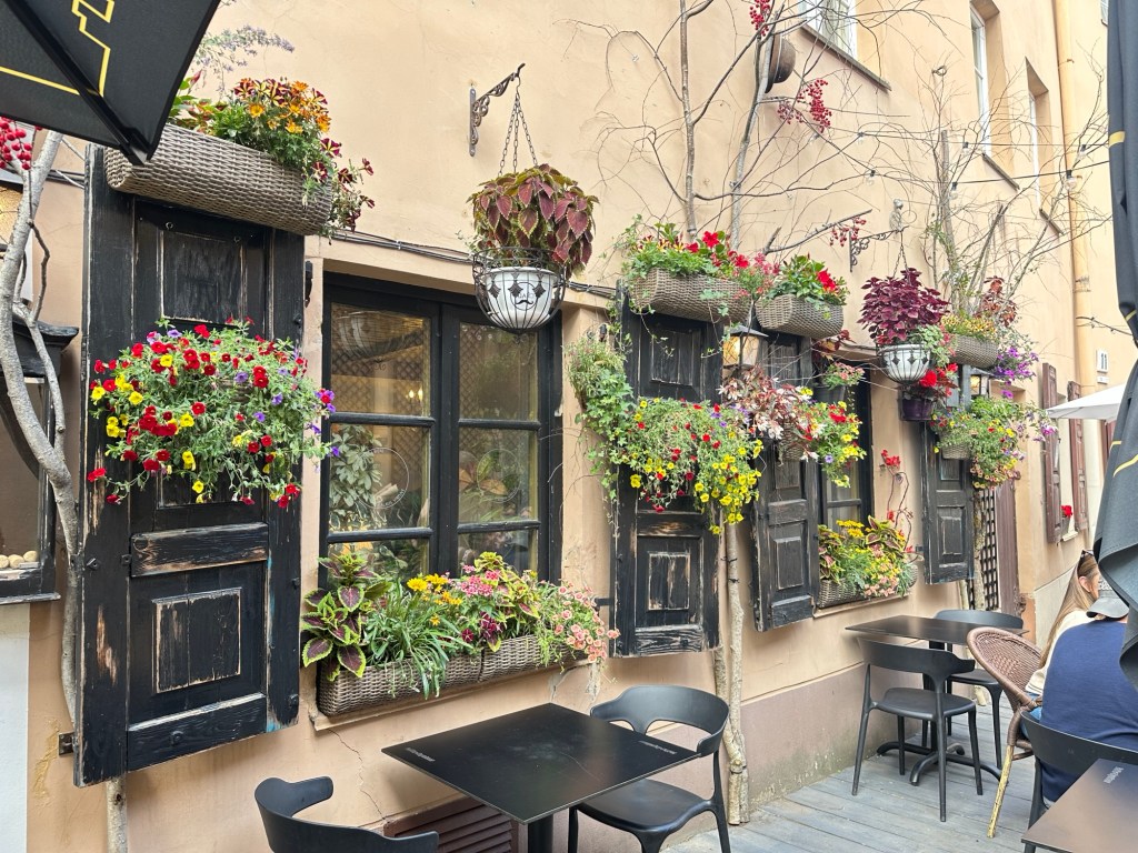 Now for the Old City- there are just so many facets to it. Winding our way through cobblestoned alleys we take in the Latvian National Opera House, Livu Square ( meeting point of eight streets), the Powder Tower (the only only one preserved of 28 towers, built 1330), Town Hall Square, House of the Blackheads ( built in 1334 as a meeting place for public organisations in Riga), St Peter’s Church (first mentioned 1209), Cathedral of the Nativity of Christ (Orthodox), Dome Square and the Riga Dome Cathedral – just to name some of the sites. Riga is a treasure trove of gems, highlighted by flowering gardens and pots everywhere. It’s quite overwhelming.