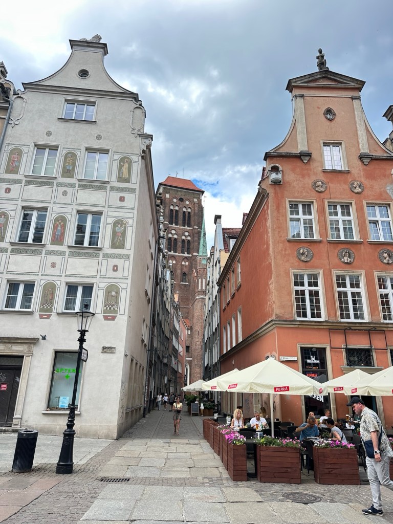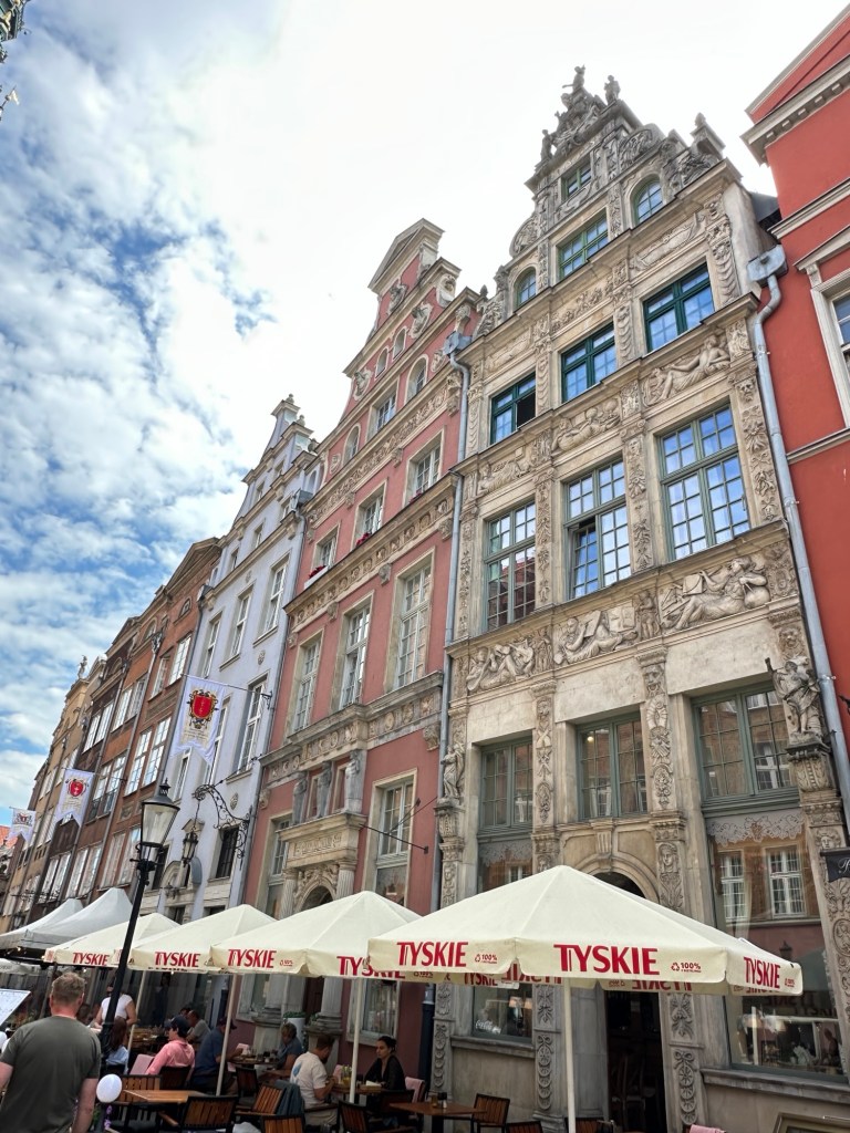 Onto the centre of the Main Town, reconstructed after WWII, where the stunning colourful merchant houses of Long Market are – these are now home to shops and restaurants. These were all destroyed in the war and have been painstakingly rebuilt over the next 70 years. I just loved the facades! Nearby is Neptune Fountain, a 17th-century symbol of the city topped by a bronze statue of the sea god (it was dismantled and hidden in basements during the war, hence its survival). The fountain stands in front of Artus Court, a 600-year-old building that survived the bombings. Across the square is a replica thermometer in a case – a memorial to resident Daniel Fahrenheit whoinvented the thermometer and fahrenheit scale. The 14th Century Main Town Hall stands prominently in the Square – it now houses the city’s historical museum.