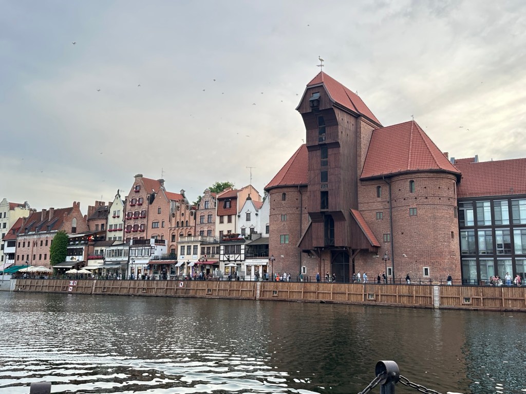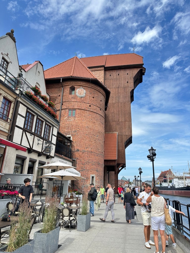 The waterfront Crane Gate, one of the defining symbols of Gdansk, dates back to 1444. The lifting mechanism was made of two pairs of treadmills and four workers powered each treadmill. This provided enough power to lift two tone of load to a height of almost 120 feet.