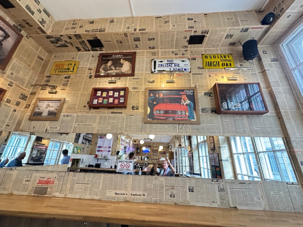 I’m not a beer drinker, but I didn’t mind the light beer, and the sweetish beer, whereas Frank enjoyed the dark beer, with its chocolate/coffee flavours. Next, a typical Polish bar, decorated with Russian propaganda posters, where we had Vodka shots – one was vodka, Tabasco and cherry, the other was vodka, ginger and pepper. I was only brave enough to do the first, Frank managed to do both, plus my other one! Nothing like taking one for the team!