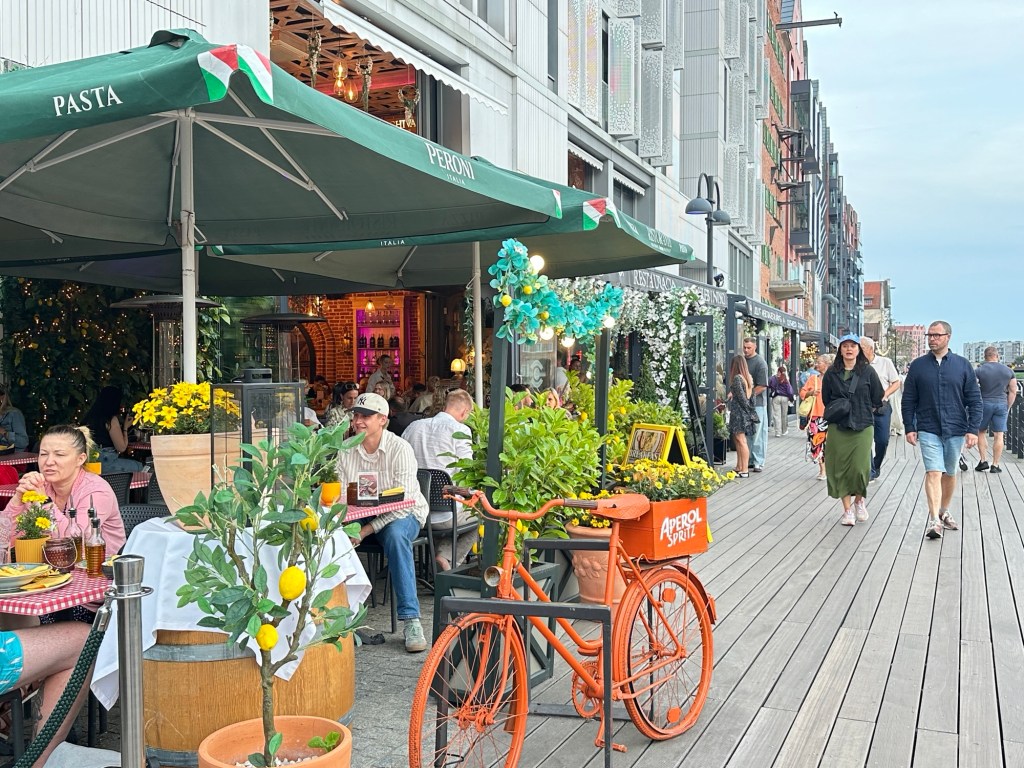 More colourful houses! Through the Green Gate, there were houses that had a Dutch influence , and others had a German influence . There was another area which had only been developed in the last ten years ( it had lain as rubble since the end of the war) where they had kept the theme, but with a more modern look. Restaurants lined the row of houses, all with river front views. It was all so beautiful.