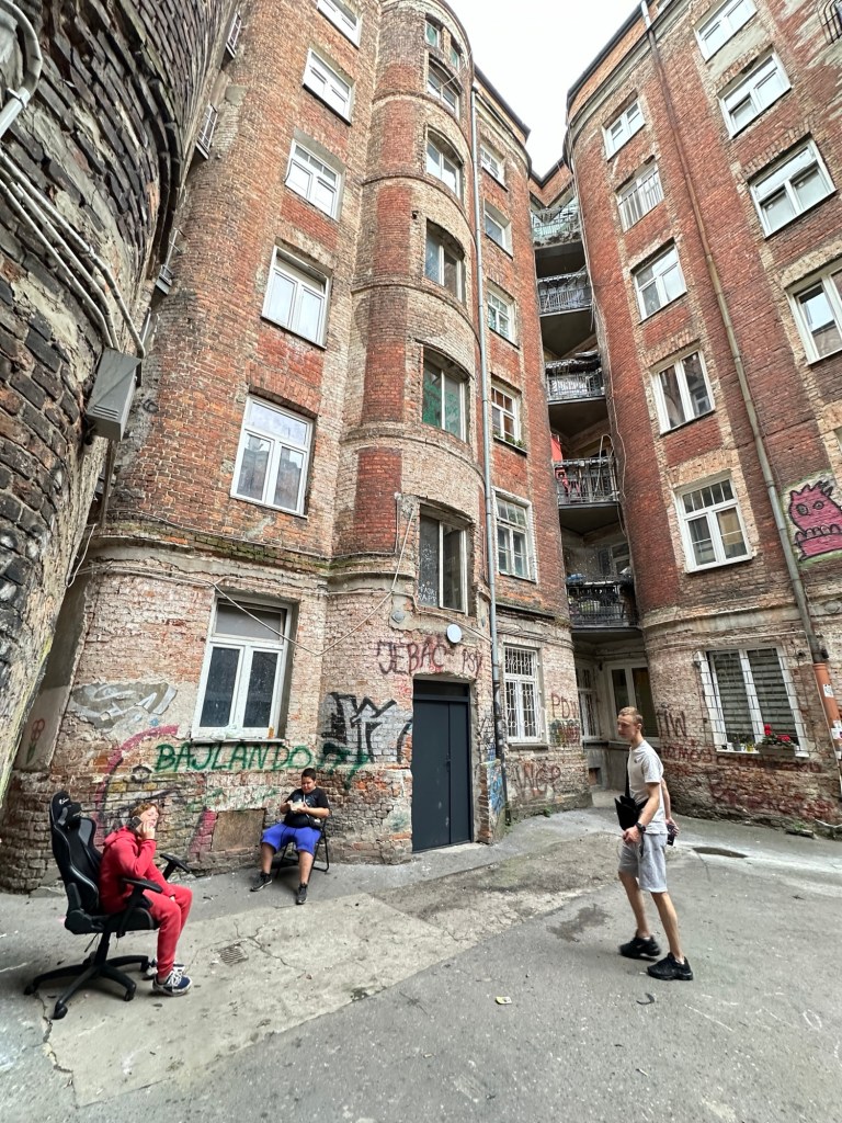 Martin also took us to another part of Warsaw (no idea what it was called), where the Polish lived when the Germans were in control. Lots of graffiti and bullet holes on the walls. Slowly some of the buildings are being renovated. Some buildings remain boarded up – until it can be proven that there no surviving descendants, these buildings can’t be touched. Some shifty characters could be seen in the street, though Martin thinks this area will be like New York’s SoHo in ten years.