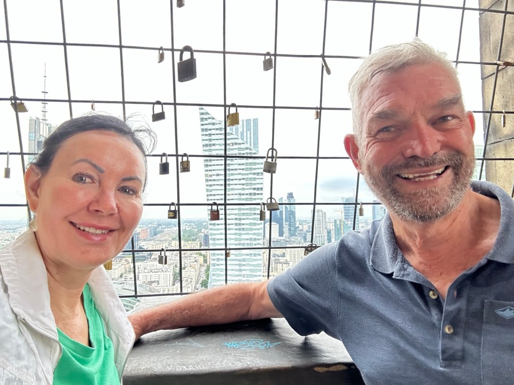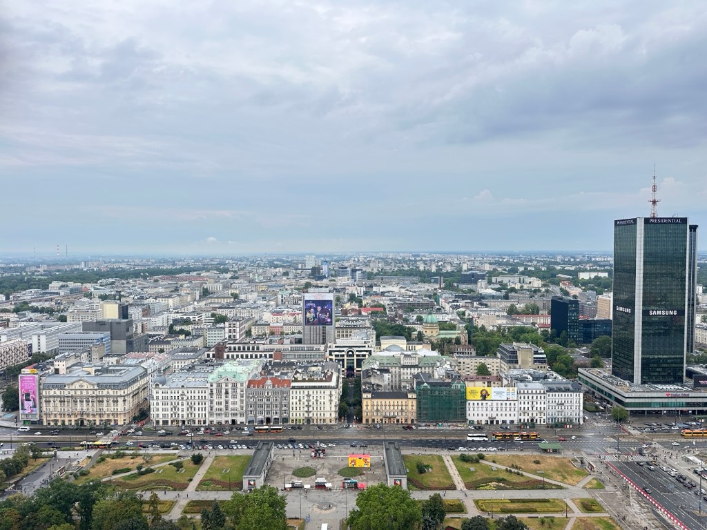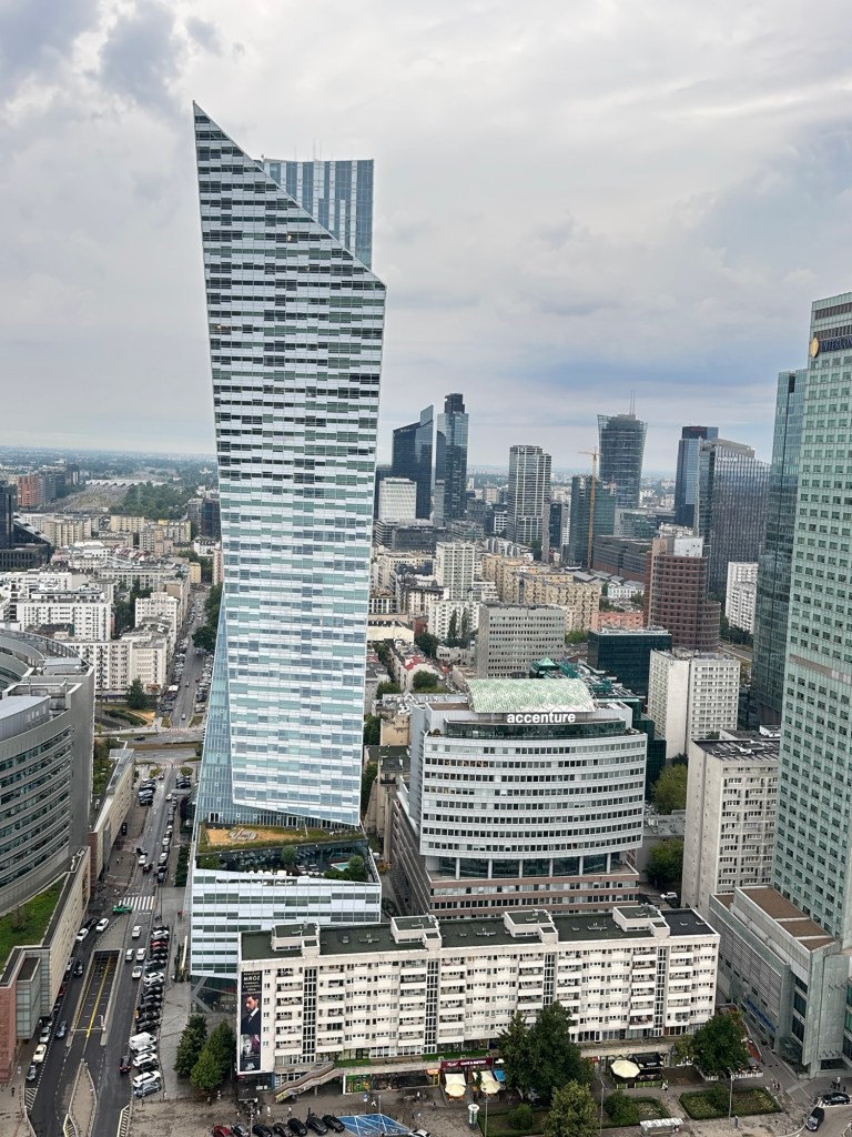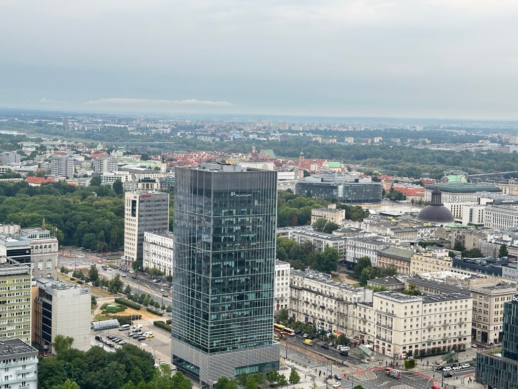 The sky cleared for a while so we went up to the 30th floor of the Palace of Culture and Science to the public viewing terrace on the roof, which offered spectacular views across the city. Very easy to see where we were staying, in amongst the few tall buildings. We saw the apartment building that is only 30 cms taller than The Shard, plus Zlota 44, an apartment building often called “the Sail” due to its shape. New buildings are springing up in this ever changing landscape.