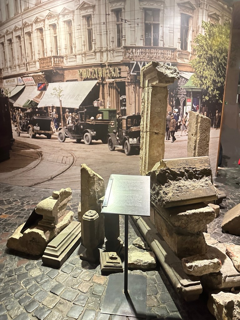 We had a quick turn around to get to Schindler’s Factory Museum – a Bolt ride did the job! We normally would have walked but had only 25 minutes to walk 2.6kms, and I have been suffering with a sore knee for some reason. Here we were booked onto a tour. Lucky we had booked, as the queue for tickets was 1.5 hours long.