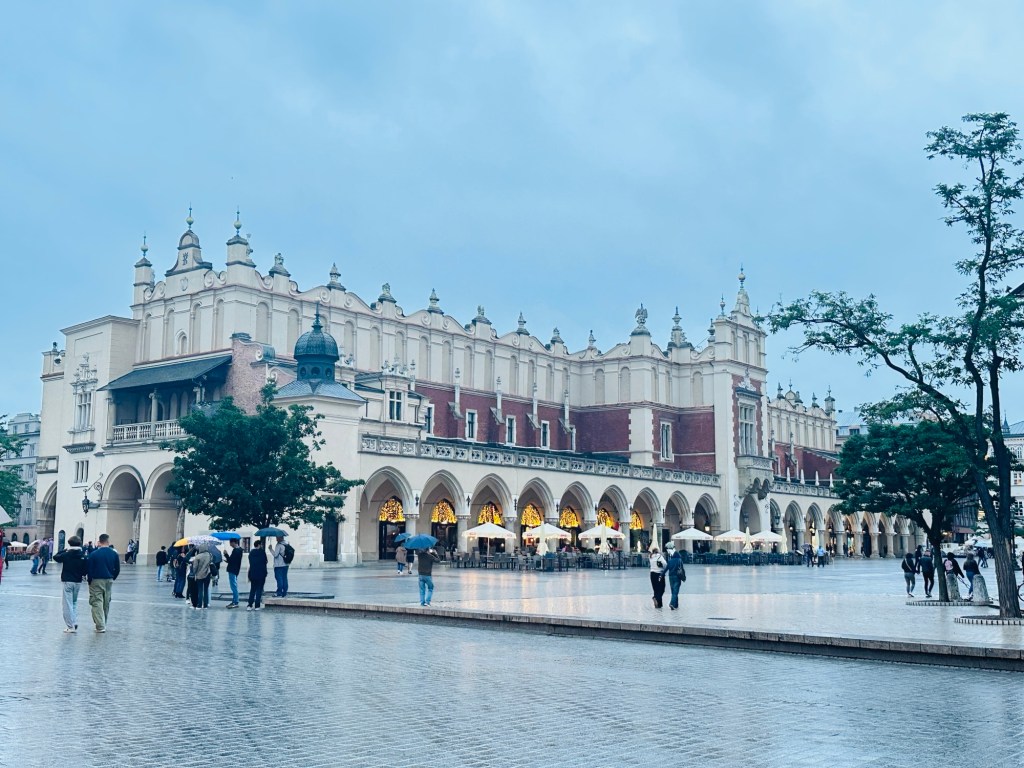 Back to Market Square and Cloth Hall – we only had a short time there the night we arrived. The Cloth Hall in the middle of Market Square originated in medieval times as a covered market. It was rebuilt after a fire in 1555, replacing an earlier Gothic trade hall from the 1300s, and then remodeled entirely in 1875 with arcades along the exterior that give it a Venetian look. Most of the stalls today sell souvenirs, plus there are many restaurants. Had a nice wander around the Hall – also timely as we kept dry when a sudden shower decided to make its appearance.