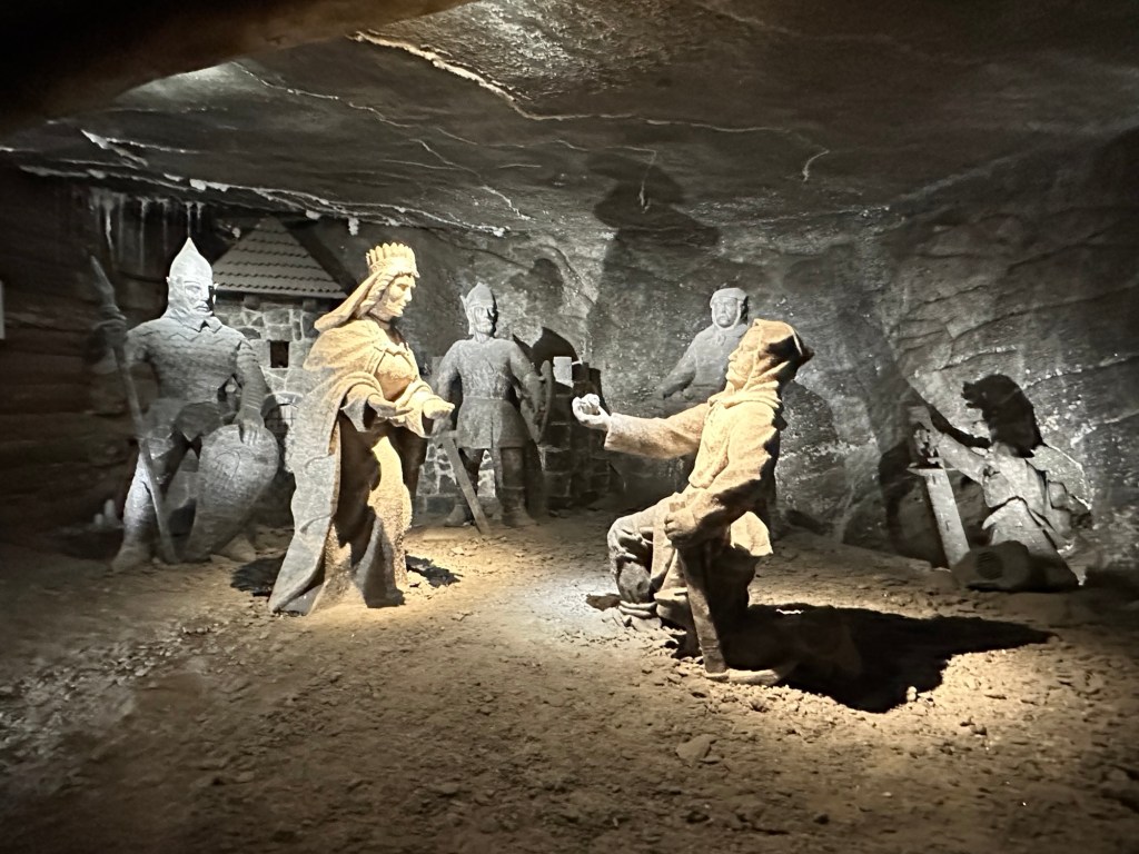 An hour’s drive gets us to the UNESCO-listed Wieliczka mine, one of the world’s oldest salt mines. From Neolithic times, sodium chloride (table salt) was produced there from the upwelling brine. The Wieliczka salt mine, excavated from the 13th century, produced table salt continuously until 1996. Due to falling salt prices and mine flooding, commercial salt mining was discontinued in 1996.