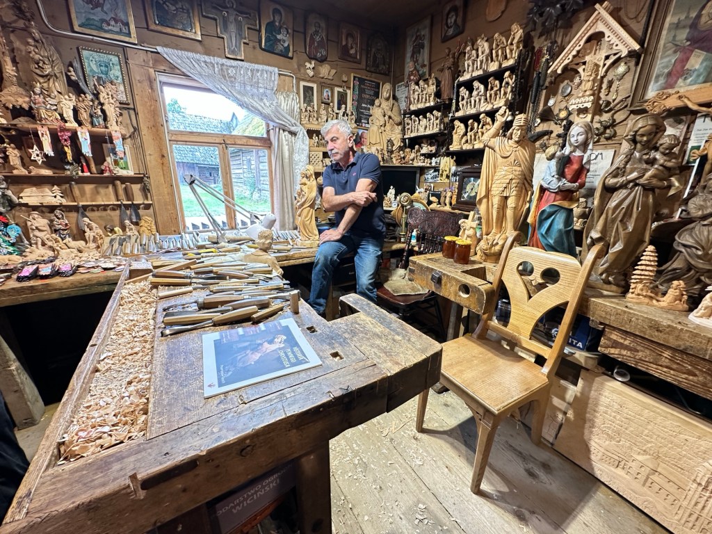 Twenty minutes later and we were in Zakopane, a popular resort town in southern Poland. It is popular with skiers in winter and with hikers and climbers year-round. A pretty little town. The Gubalowka Funicular took us to the summit at 1123 metres . Spectacular views of the alpine forests, ski jumps and township down below. We had lunch at a lovely restaurant overlooking the stunning countryside. I tried the Kwasnica which is sour cabbage soup with smoked pork rib – a nice tangy taste, and Frank had the traditional dumplings, pierogi, with a minced pork filling, served with mushroom and onion sauce.
