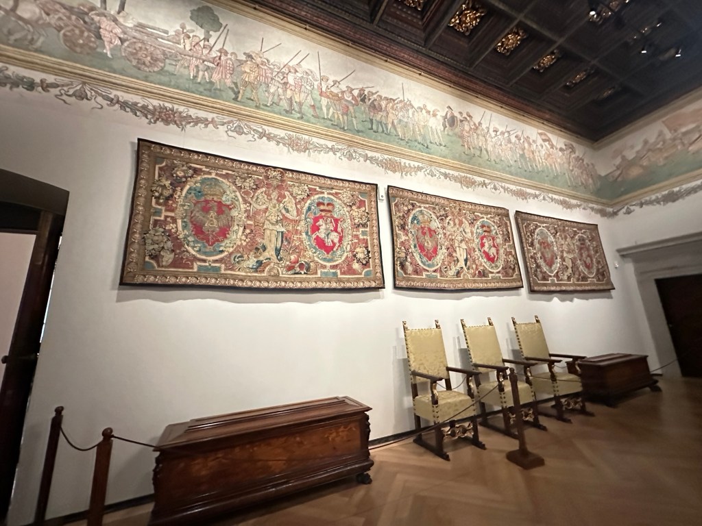 The Wawel Royal Palace, and the Wawel Hill on which it sits, constitutes the most historically and culturally significant site in Poland. Serving as a royal residence and the site where the country’s rulers governed Poland for five centuries (1038-1596), this fortified residency on the Vistula River is a symbol of the independent Polish state and today is one of the country’s premier art museums. A priceless collection of 16th-century Flemish tapestries, considered to be one of the largest in the world, is also housed there. There was also a temporary exhibition of an Ottoman Turkish Tent collection.