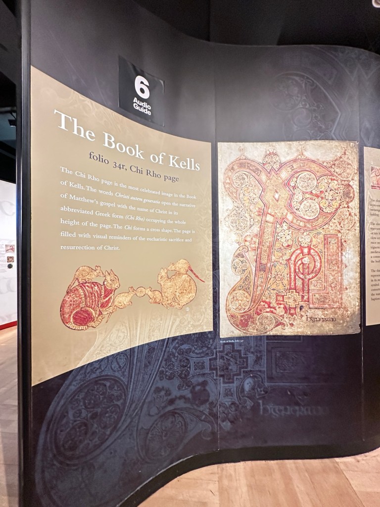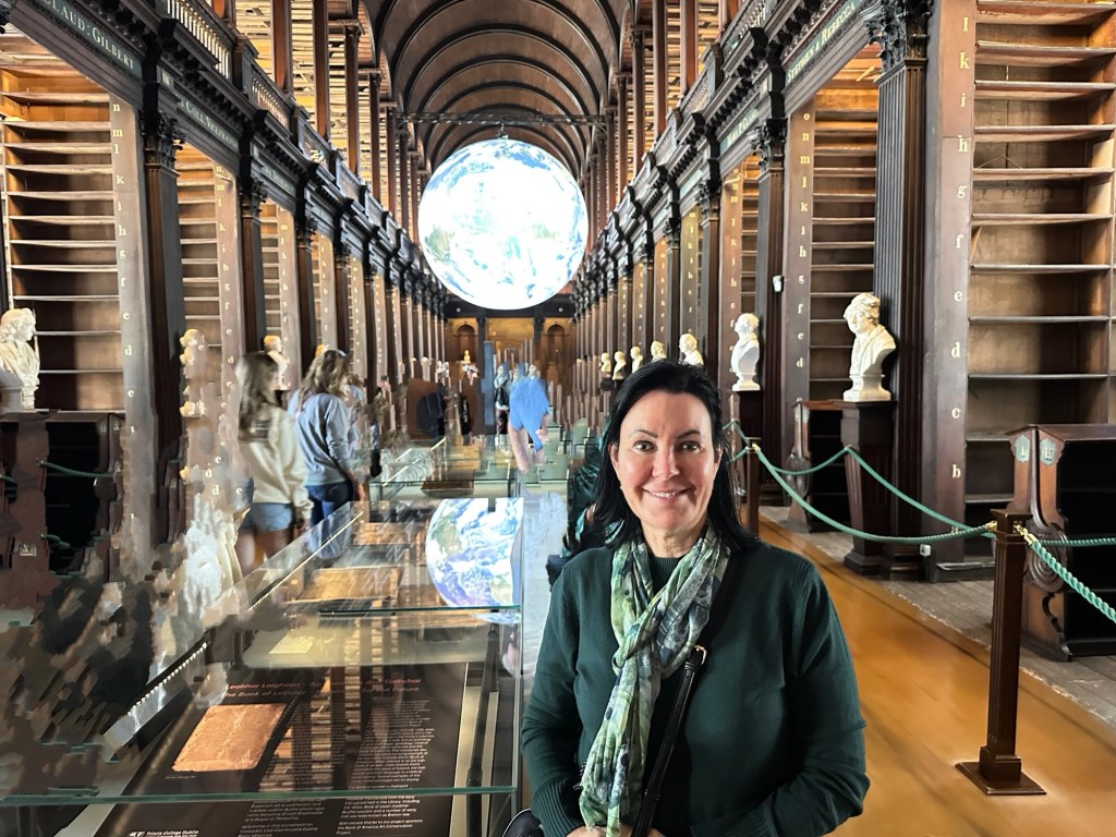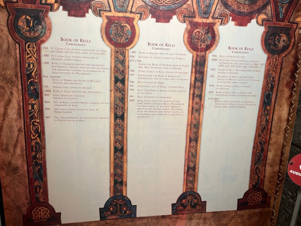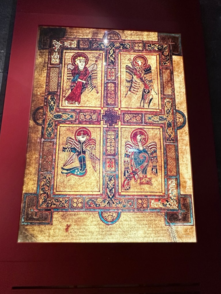 We had paid to go to The Book of Kells Experience. The Book of Kells is a masterpiece of medieval art. It is a superbly decorated, handwritten copy of the story of the life of Jesus Christ set out in the Gospels of Mathew, Mark, Luke and John. The Book of Kells was written on vellum (calfskin), in Latin, close to the year 800 AD. It was fascinating to see how this book was made all those years ago. The highlight was going upstairs to visit the Long Room which was designated as a legal deposit library entitled to a copy of every printed work published in the British Isles. Also there, was Gaia, an artwork by Luke Jerram, designed to highlight the beauty and the fragility of the earth.