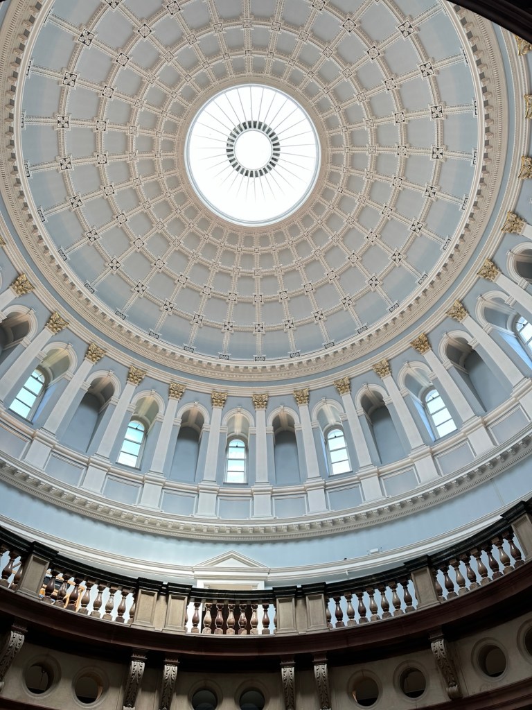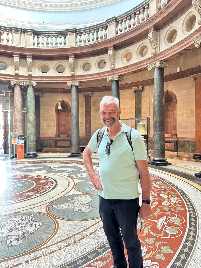 Onto the National Museum of Ireland – Archaeology was built in the 1880s to the plans of Cork architect Sir Thomas Deane. Its splendid domed rotunda, inspired by Palladian design, features marble pillars and an elegant mosaic floor decorated with the signs of the zodiac. Admission is free. Upstairs Viking and medieval artefacts are housed. Downstairs we saw four bog bodies – 1800 year old bodies discovered buried and preserved in peat.